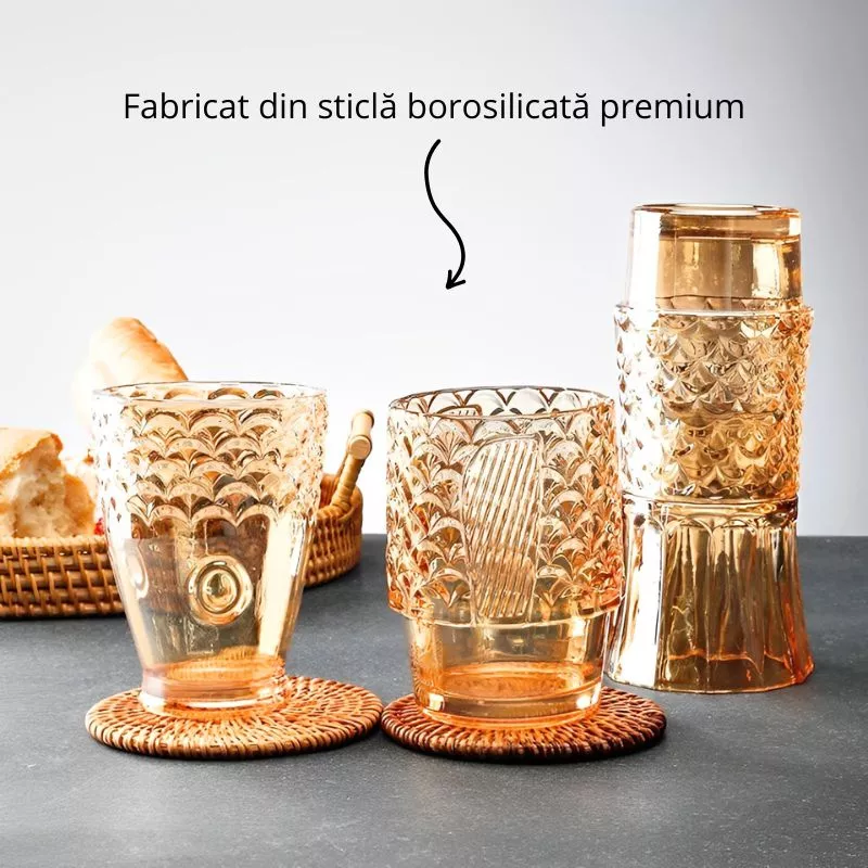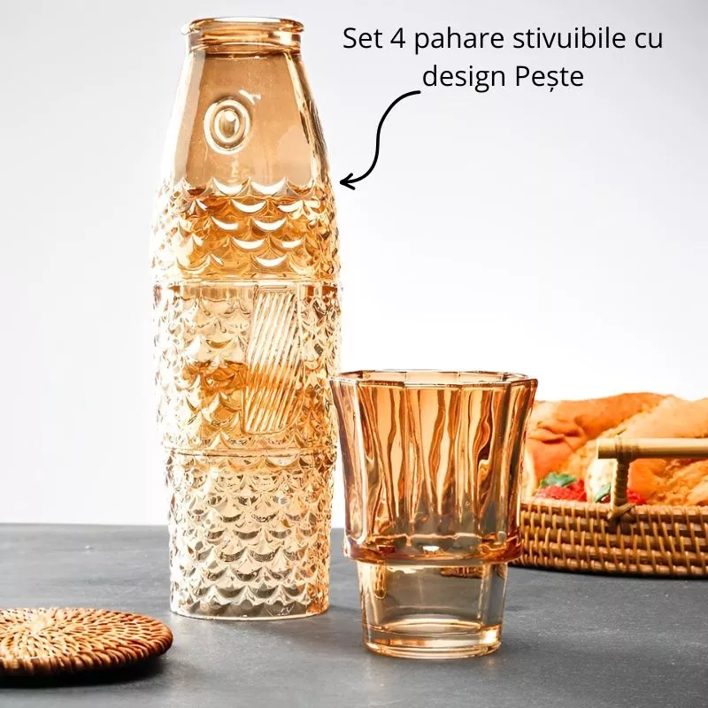 Alegeti preferatul din acest set 4 pahare stivuibile cu design Peste si serveste-te bautura zilei cu incredere.