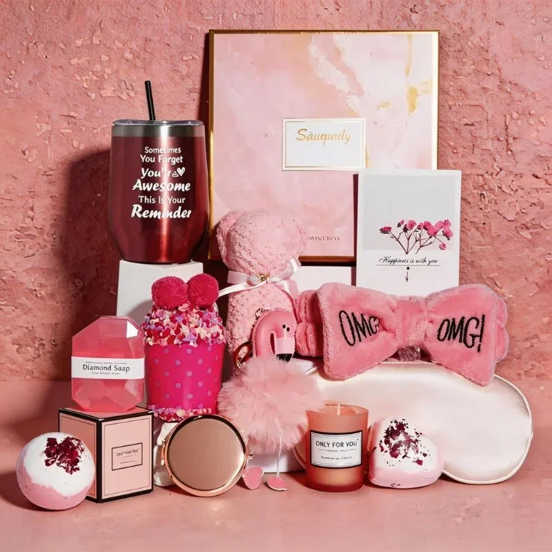 Setul include un pahar elegant pentru bauturi preferate, un prosop adorabil in forma de urs, doua bombe de baie efervescente, o lumanare parfumata care creeaza o atmosfera relaxanta, o oglinda compacta perfecta pentru geanta, un sapun delicat pentru pielea ta, o masca de dormit pufoasa pentru nopti linistite, sosete calduroase si confortabile, un breloc dragut si o felicitare personalizata pentru a transmite ganduri frumoase. Toate acestea vin ambalate intr-o cutie cadou rafinata, perfecta pentru a impresiona pe oricine.