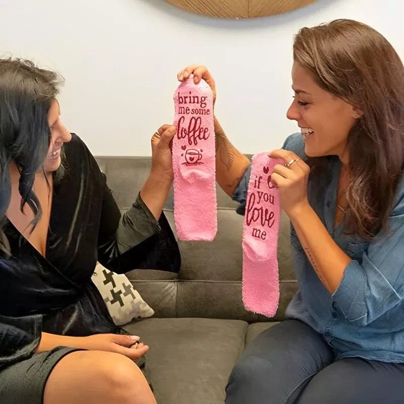 Sosete amuzante If you love me Bring Me Coffee sunt confectionate din bumbac moale, de cea mai buna calitate, care stiu cum sa-ti rasfate simturile amortite. Dovada de iubire se va face usor remarcata, in timp ce culoarea dulce si roz te vor face sa te simti mult mai feminina. Talpa cu text antiaderent este perfecta pentru prevenirea alunecarii pe gresie.