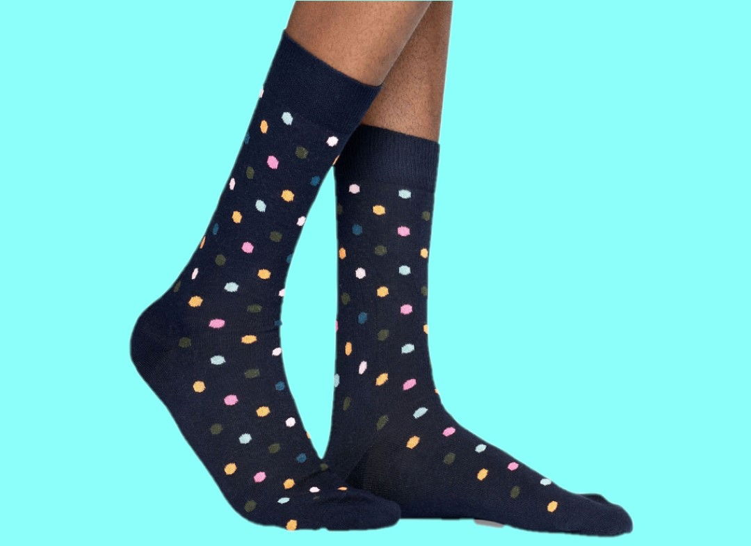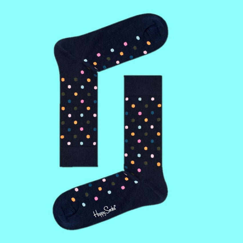 Cea mai simpla formula de succes a unei tinute elegante va fi intotdeauna combinatia alb-negru, insa putina indrazneala nu strica niciodata. Sosetele cu buline Happy Socks Dot Sock pot fi elementul indraznet, dar subtil care sa completeze o tinuta eleganta. Presarate pe un fundal albastru inchis, micile buline colorate pot fi asortate perfect la costume barbatesti, fiind insa la fel de potrivite si pentru tinute casual, de weekend.