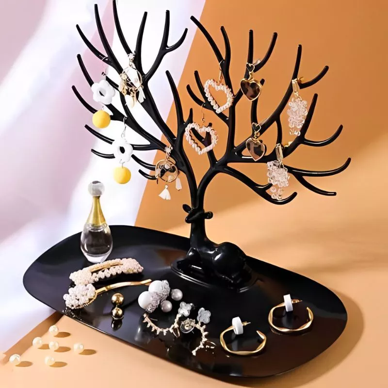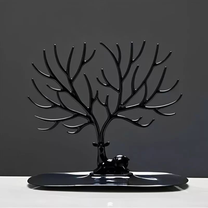 Utilizare: Suport bijuterii Caprioara neagra, display si organizator pentru mici comori se aseaza cochet si cu dragoste pe masuta de toaleta. Se imbraca ramurile rand pe rand cu cele mai fabuloase bijuterii, urmand ca la baza acestuia sa fie aliniate late comori pe care sa le ai pretutindeni la indemana.