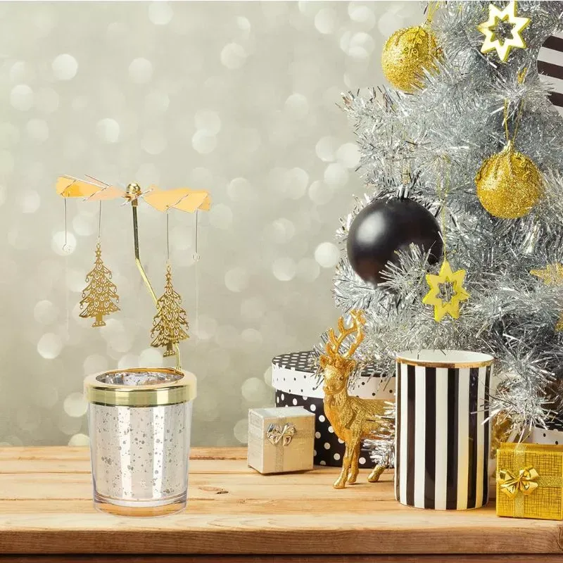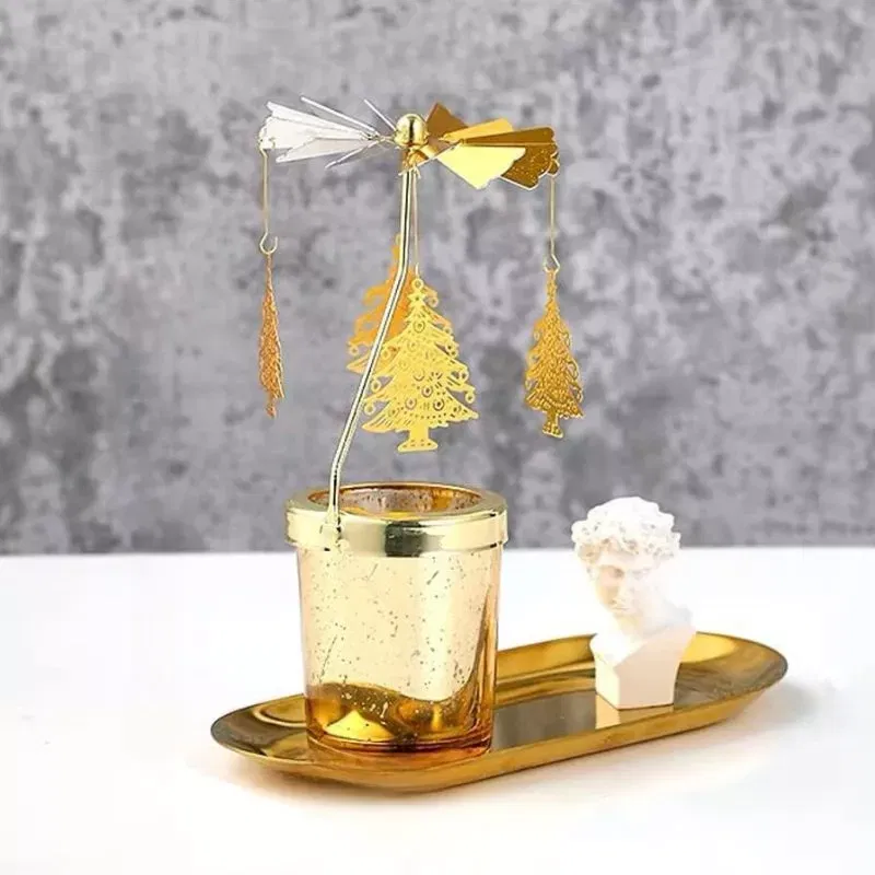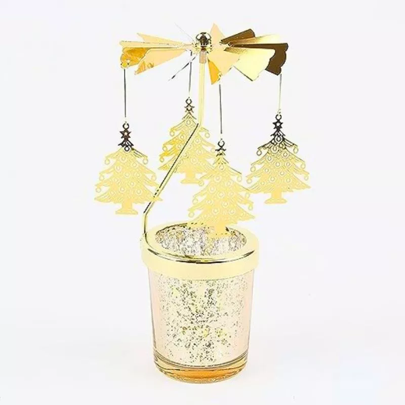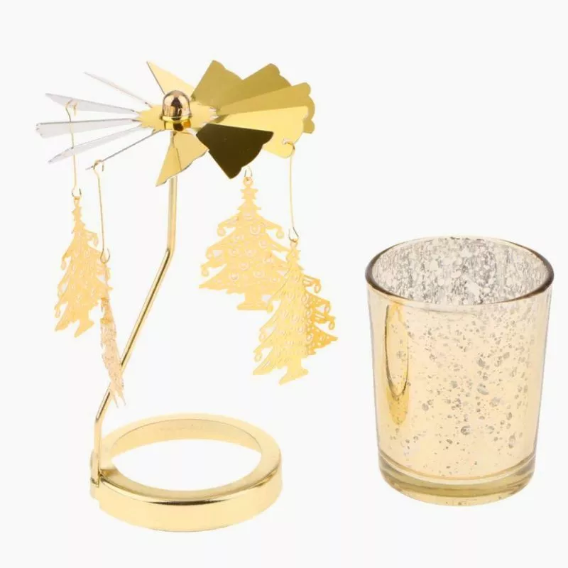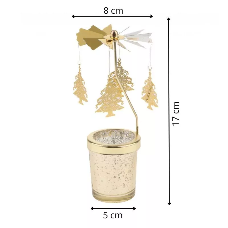 Dupa ce ai facut o licoare pe cinste care sa-ti aduca linistea in taramul tau fermecat, monteaza cu grija acest suport lumanare decorativa Caruselul cu brazi.