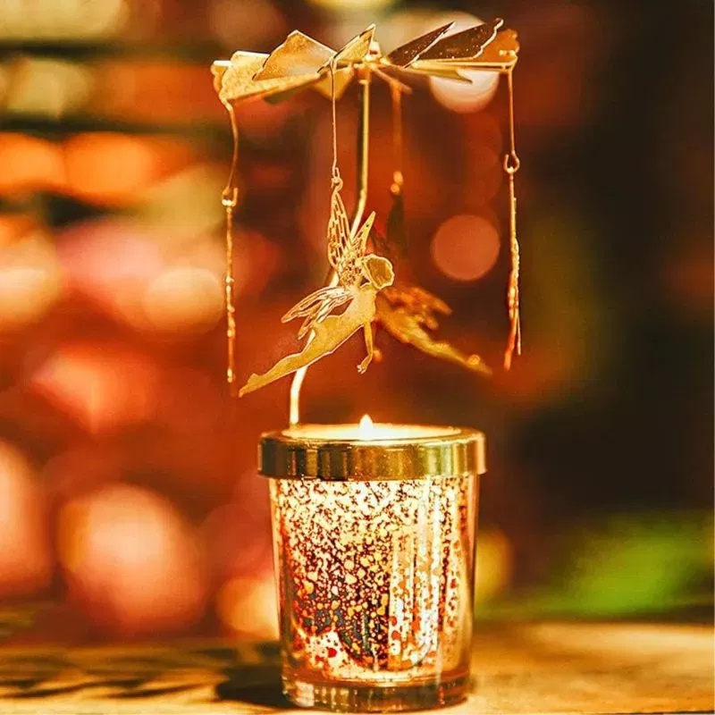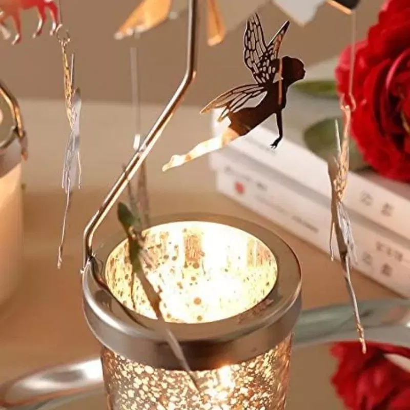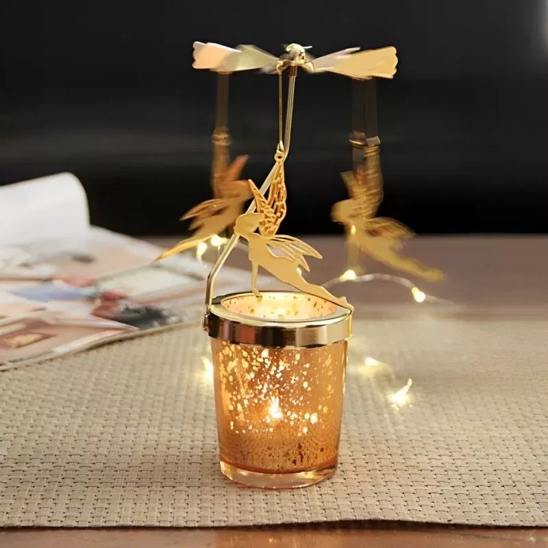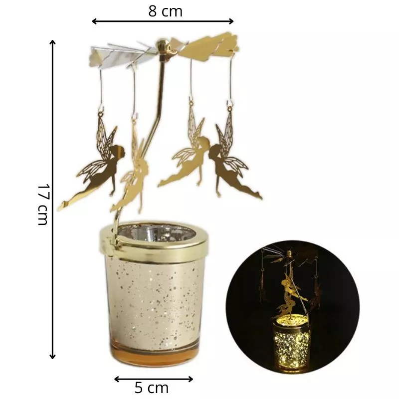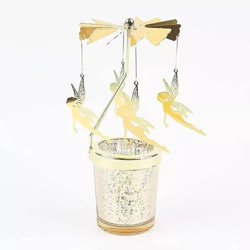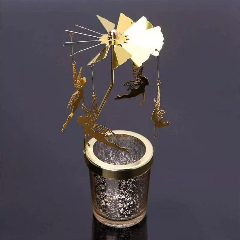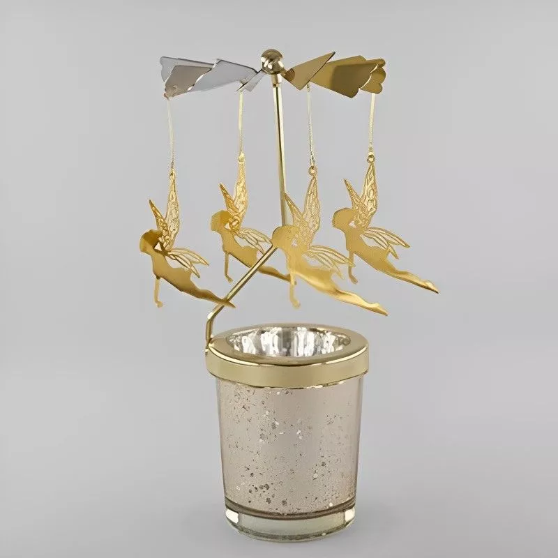 4 zane, 6 miscari! Doar atat ai nevoie ca sa te bucuri asa cum trebuie de suport lumanare decorativa Caruselul cu zane. Micile elemente cu verigi rotunde la capete se folosesc pentru a conecta cu zanele palaria circulara rotativa.