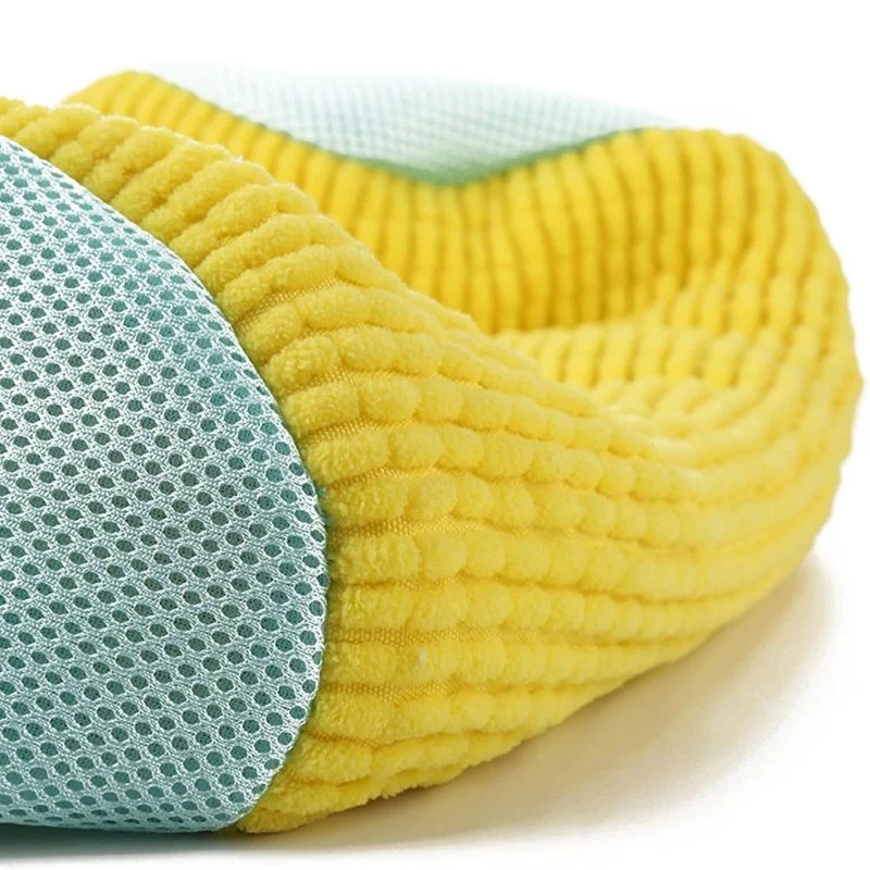 Designul cu fermoar durabil si forma compacta permit o inchidere sigura si un proces de spalare fara griji. Materialul textil de tip coral fleece absoarbe socurile si reduce zgomotul in timpul spalarii, oferind astfel o experienta silentioasa si placuta. In plus, partea inferioara antiderapanta asigura stabilitatea incaltamintei in interiorul husei pe durata ciclului de spalare.