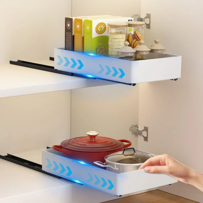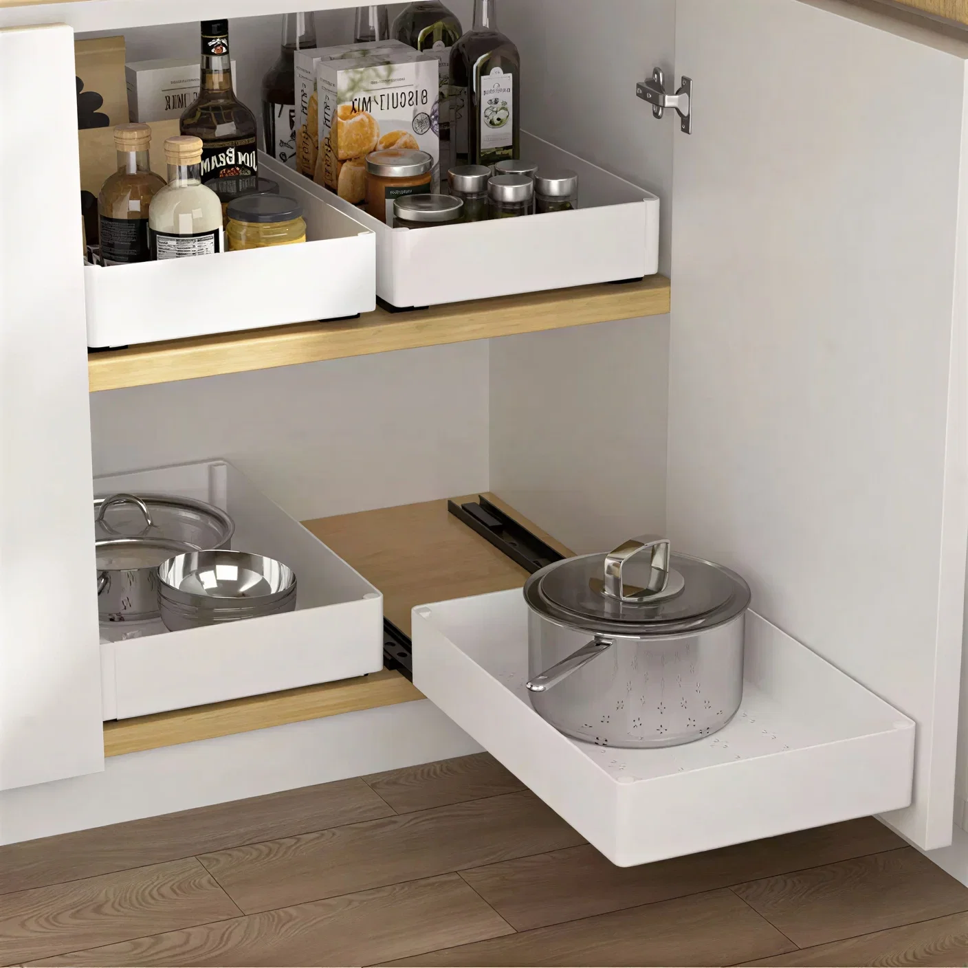 Sertarele glisante se monteaza in interiorul dulapului, folosind sistemul de ghidaje inclus. Dupa instalare, acestea pot fi trase complet in exterior, oferind acces rapid la toate obiectele depozitate. Sunt ideale pentru organizarea condimentelor, borcanelor, cutiilor alimentare sau a altor produse din bucatarie, dar pot fi folosite si in baie, camara sau dressing.