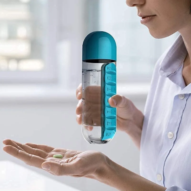 Este alegerea perfecta pentru cei care urmeaza tratamente, suplimente sau vitamine in mod regulat si vor sa-si simplifice rutina zilnica. Fie ca esti la birou, la sala, intr-o excursie sau acasa, aceasta sticla iti asigura hidratarea si organizarea in acelasi timp.