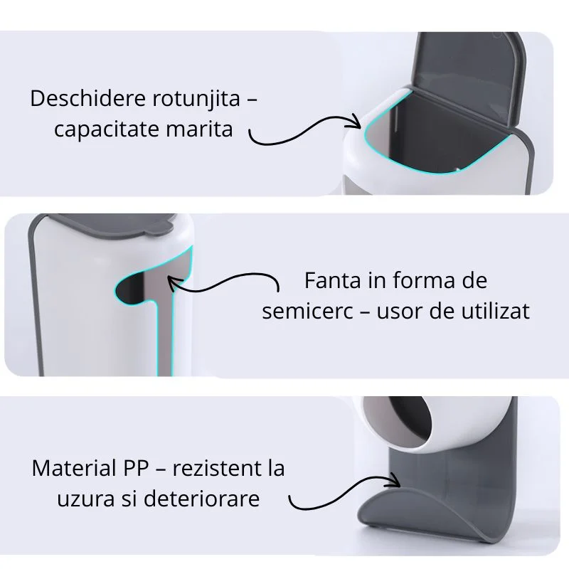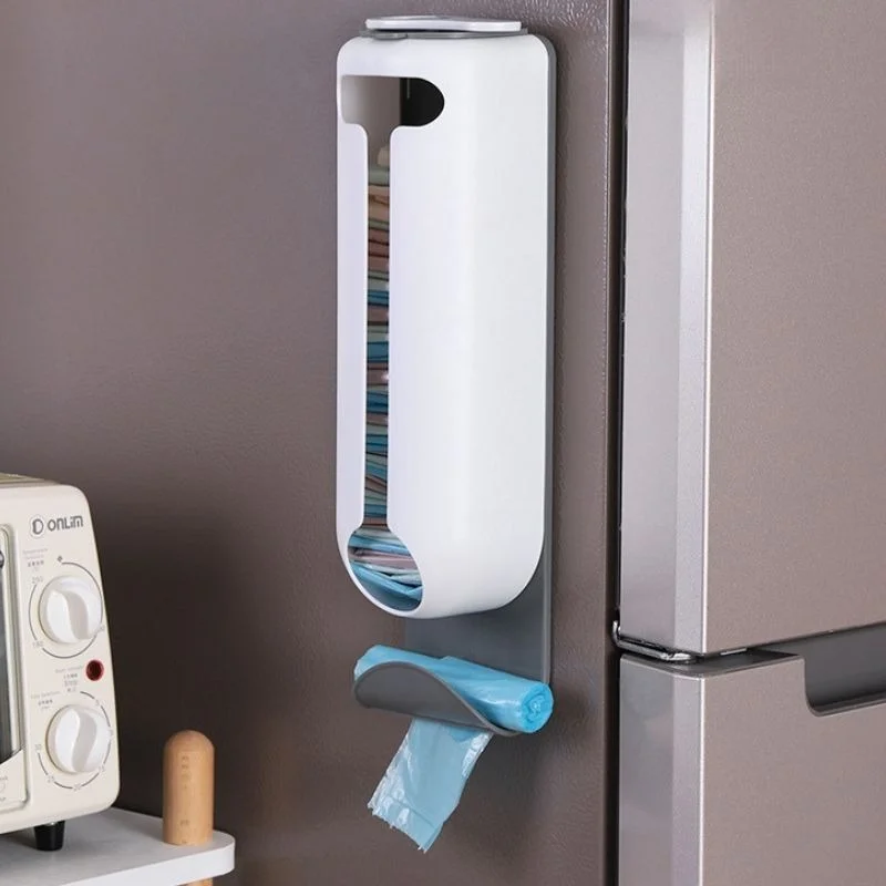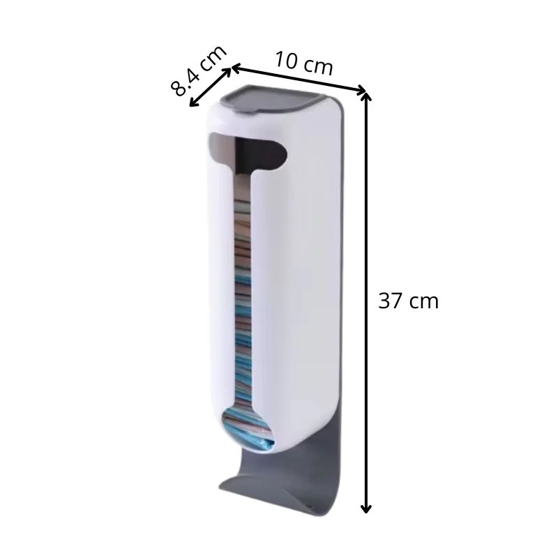 Designul minimalist in alb si gri se potriveste perfect in orice stil de amenajare, oferind o nota moderna si ordonata. Este o solutie inteligenta pentru persoanele care doresc sa economiseasca spatiu, sa pastreze curatenia si sa aiba pungile mereu la indemana.