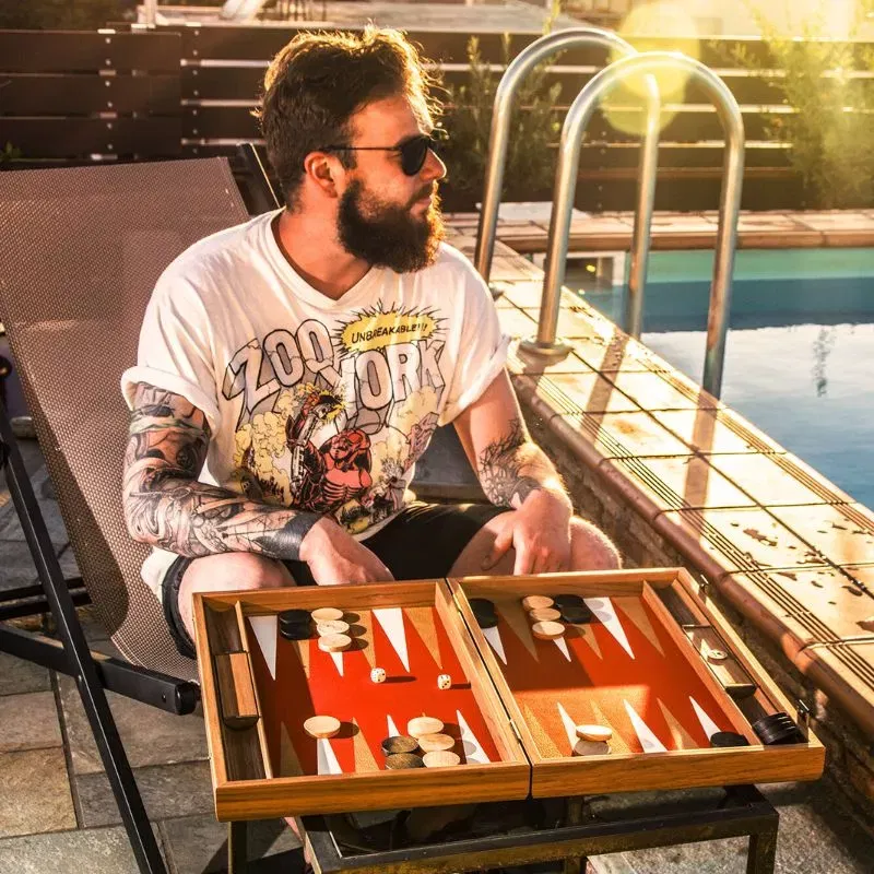 Persoanele cu gust rafinat si interes in arta: Designul Rosu de cinabru cu fildes si Taba al jocului de table backgammon atrage atentia iubitorilor de arta si estetica rafinata. Este un cadou potrivit pentru cei care apreciaza frumusetea si finetea designului.