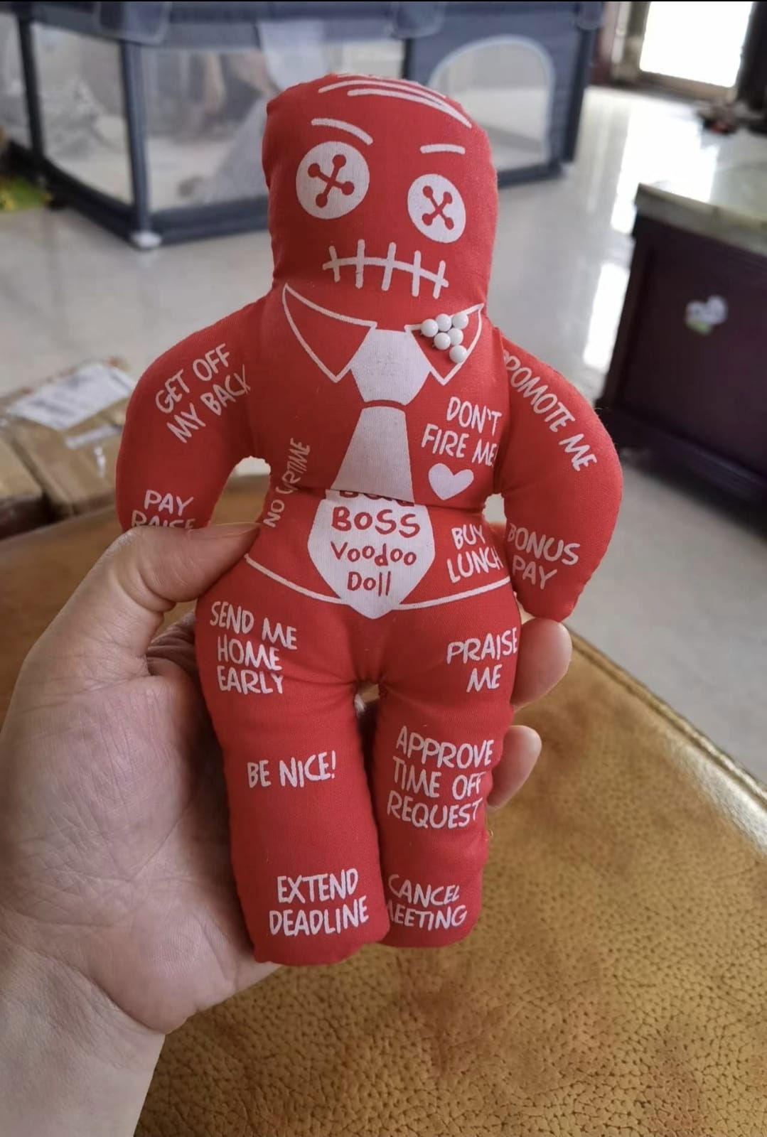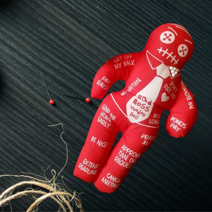 Stii sefii aceia fooaaarte, foarte enervanti care nu te lasa in pace nici macar o secunda? Da, exact aceia care iti cer raportul la 16:59 sau iti reproseaza pauza de cafea de 10 minute. Ei bine, razbunarea este in sfarsit dulce! Papusa VOODOO a sefului este aliatul perfect prin care ii poti „inapoia” toate micile nedreptati din ultima saptamana – cu un zambet mare pe buze.
