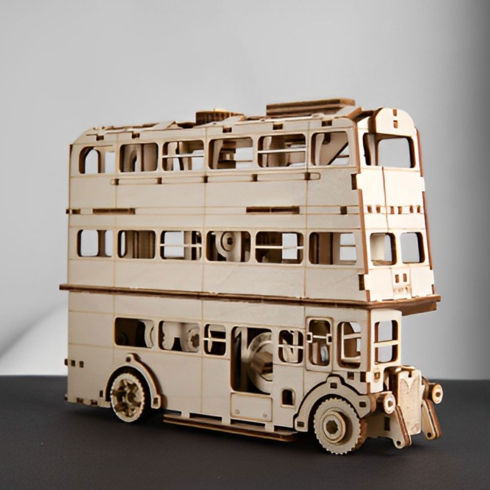 Puzzle-ul 3D Knight Bus din lemn, Ugears, bazat pe cartile indragite de J. K. Rowling, este cotat ca dificultate „medie”, are 268 de piese si un timp estimat de asamblare de 6 ore. Puteti lasa Knight Bus in starea sa atractiva de lemn natural, il puteti picta in violet (cum se vede in Harry Potter si Prizonierul Azkaban) sau il puteti face in orice schema de culori doriti cu propriile vopsele pentru lemn.
