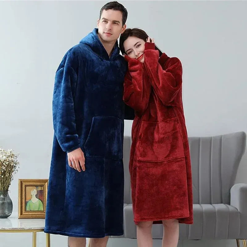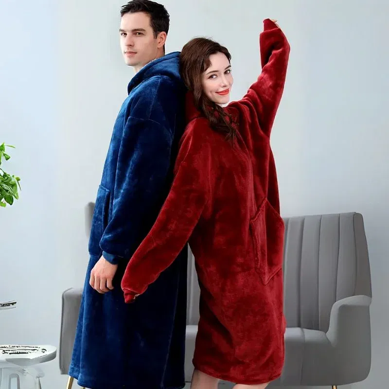 Descopera confortul suprem alaturi de persoana iubita cu acest set de paturi cu maneci si gluga, special concepute pentru cupluri! Fabricate din flanel polar de calitate premium, aceste paturi sunt perfecte pentru a va incalzi in serile reci, oferind o experienta de neuitat. Designul inteligent cu maneci largi si gluga iti permite sa te misti in voie si sa te simti invelit complet, in timp ce buzunarul tip cangur este ideal pentru a pastra mainile calde sau pentru a tine la indemana telefonul si alte obiecte mici. Cu o lungime generoasa de 135 cm, paturile sunt suficient de mari pentru a te inveli complet si a te bucura de momente relaxante alaturi de partener. Fie ca vizionati un film, cititi o carte sau va relaxati in fata semineului, aceste paturi sunt esentiale pentru serile de neuitat in doi.