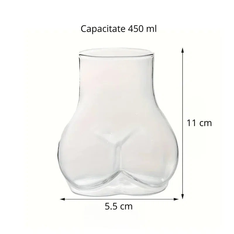 Acest pahar amuzant, model Butt, este creat pentru cei care iubesc sa aduca un zambet pe buzele celor din jur. Fabricat din sticla de inalta calitate, acest pahar are un design jucaus si provocator, perfect pentru petreceri sau momente de relaxare acasa. Cu o capacitate de 450 ml, este ideal pentru a savura orice bautura preferata, de la cafea la cocktailuri.