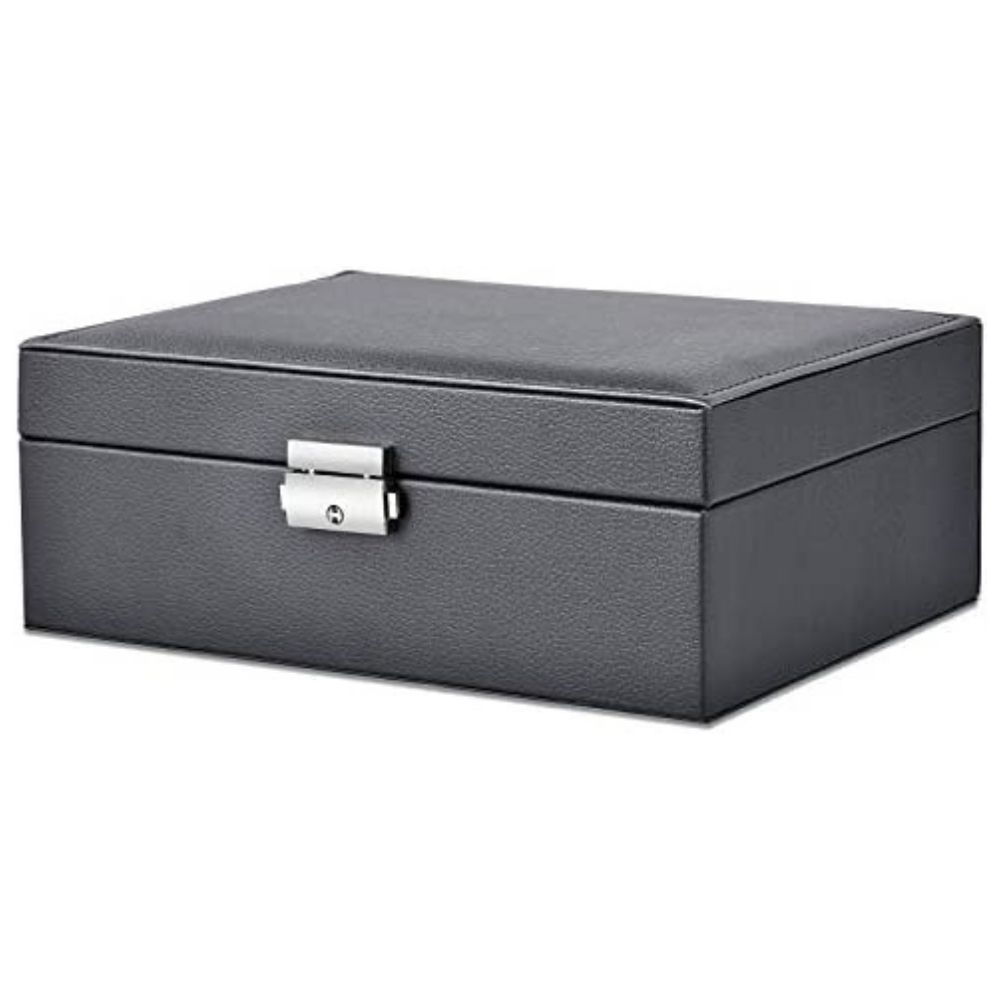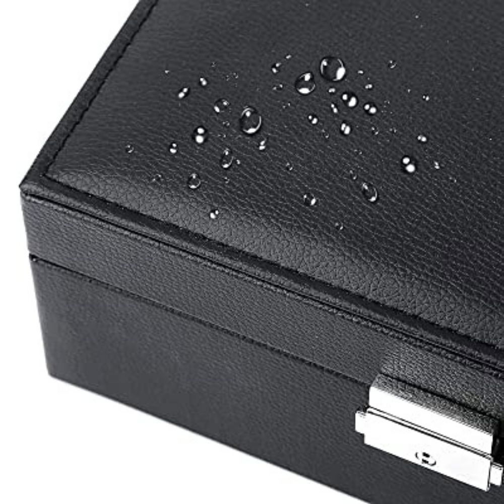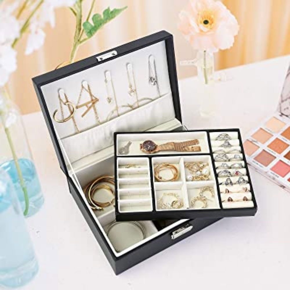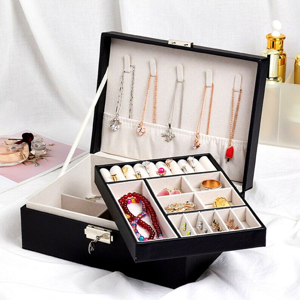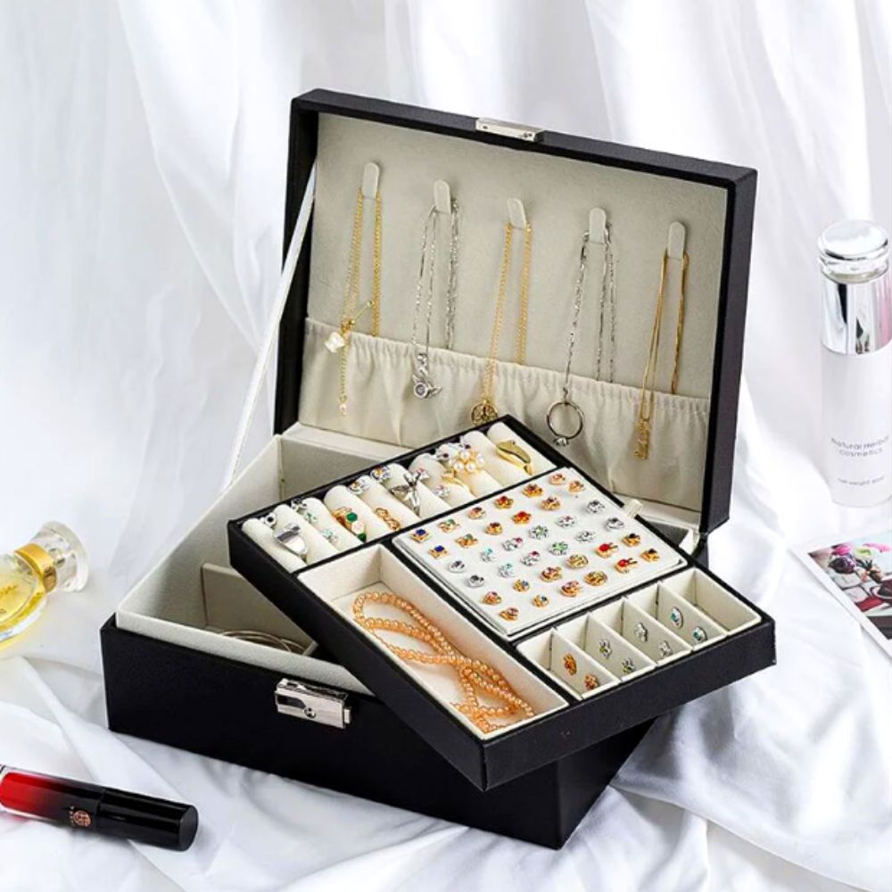 De asemenea, cutia aceasta de depozitare este potrivita pentru calatorii sau excursii, deoarece are multe compartimente, in care iti poti organiza bijuteriile preferate, ferindu-le de diversi factori externi, daunatori. Are dimensiunile de doar 23x17.5x9 cm. Astfel, aceasta cutie de bijuterii va fi usor de transportat si nici nu iti va ocupa mult loc in bagaj, iar partea extraordinara este ca vei avea cu tine in vacanta toate accesoriile de care ai nevoie.