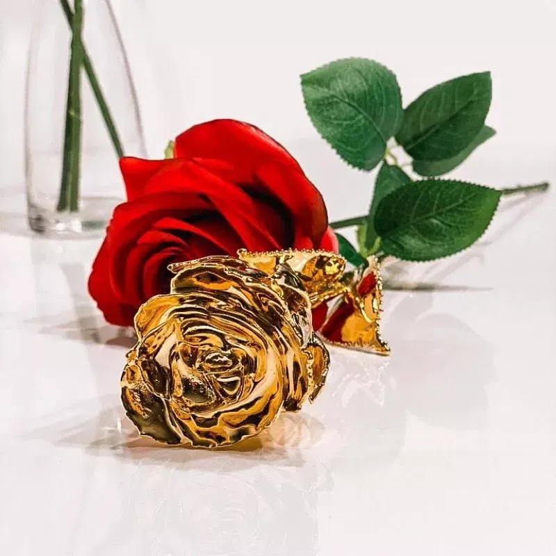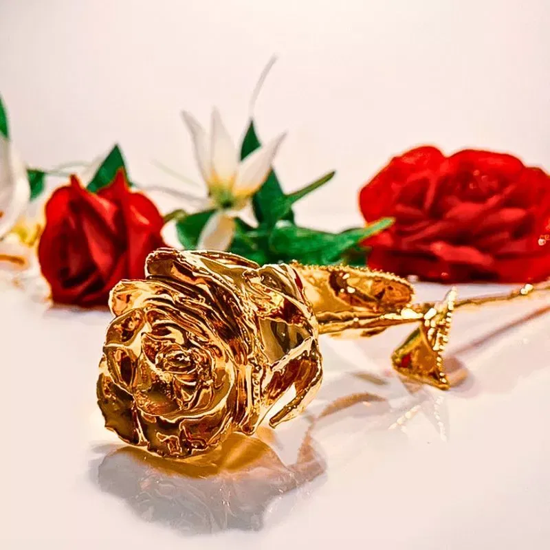 Acest trandafir placat cu aur pur de 24K este cadoul perfect pentru femei, fie ca vorbim de iubite, mame, sotii, sefe sau alte femei minunate. Frumusetea unei gradini de trandafiri e comparabila doar cu sentimentele autentice care ne leaga de cei dragi – mereu proaspete, vulnerabile si puternice in acelasi timp.