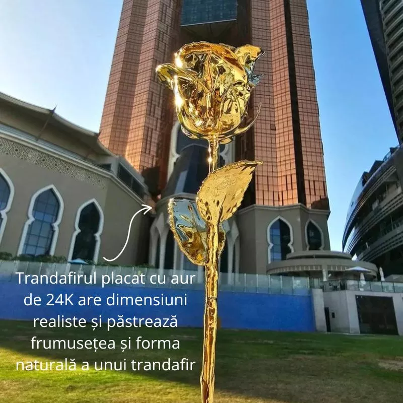 2. Simbol al iubirii si romantismului: Trandafirul este un simbol universal al iubirii si romantismului, iar placarea cu aur de 24K amplifica semnificatia sa. Acesta poate fi un cadou perfect pentru a exprima afectiunea si devotamentul fata de persoana iubita.