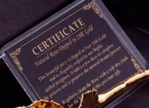 3. Originalitate: Fiecare trandafir placat cu aur de 24K este unic, deoarece formeaza o combinatie intre frumusetea naturala a florii si rafinamentul aurului. Este un obiect de colectie special, care te va diferentia si te va impresiona cu originalitatea sa.