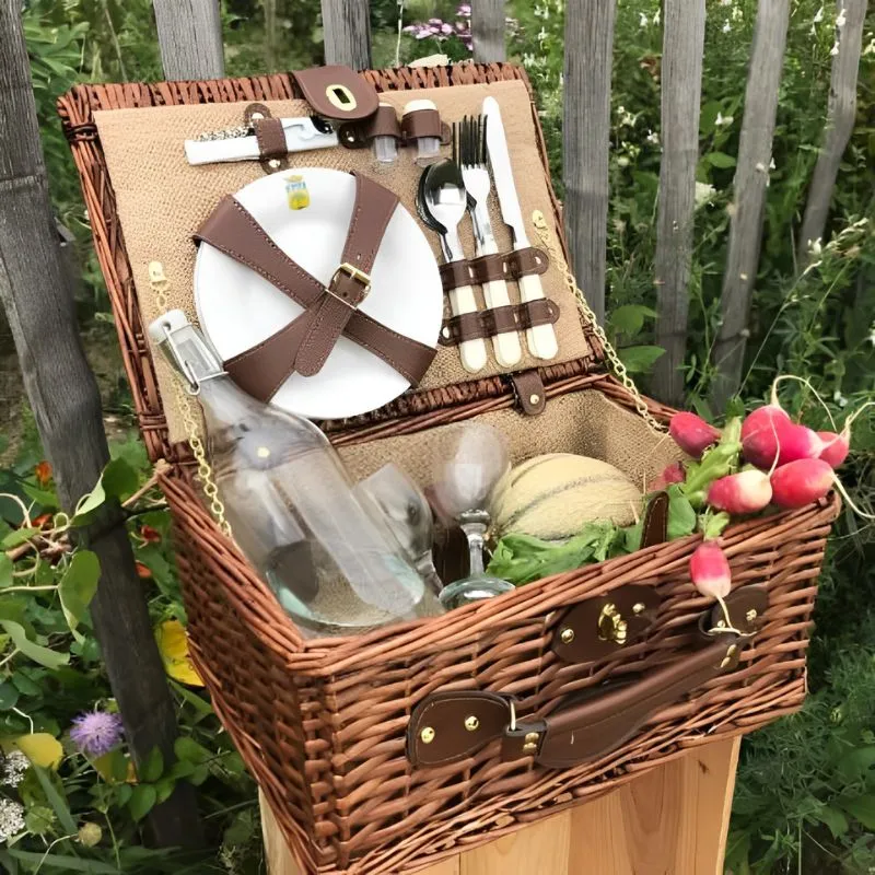 • Cos de picnic dreptunghiular, elegant, cu aspect vintage