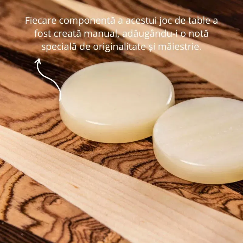 Finisaj perfect executat: Acest joc de table Clasic Senet este realizat din lemn de nuc, un material robust si durabil. Constructia solida si finisajul atent executat ii confera rezistenta si o viata lunga de utilizare, asigurandu-ti ca vei avea parte de multe momente de distractie alaturi de acest joc.