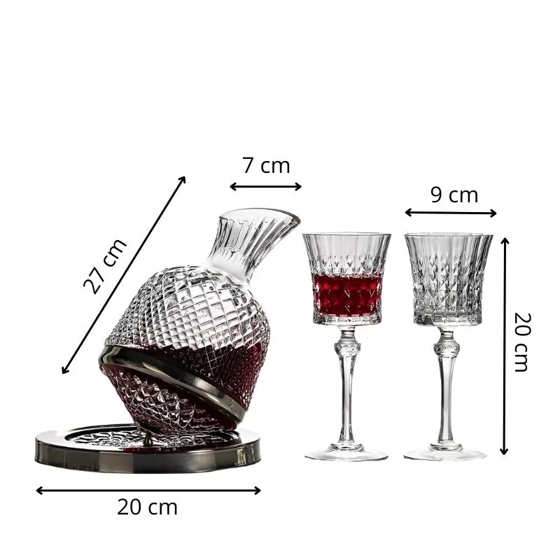 Beneficiile acestui Set Decantor de bauturi Rotativ cu 2 pahare, argintiu