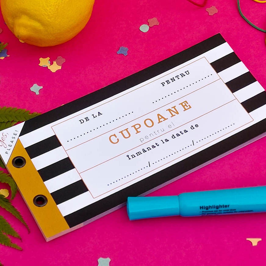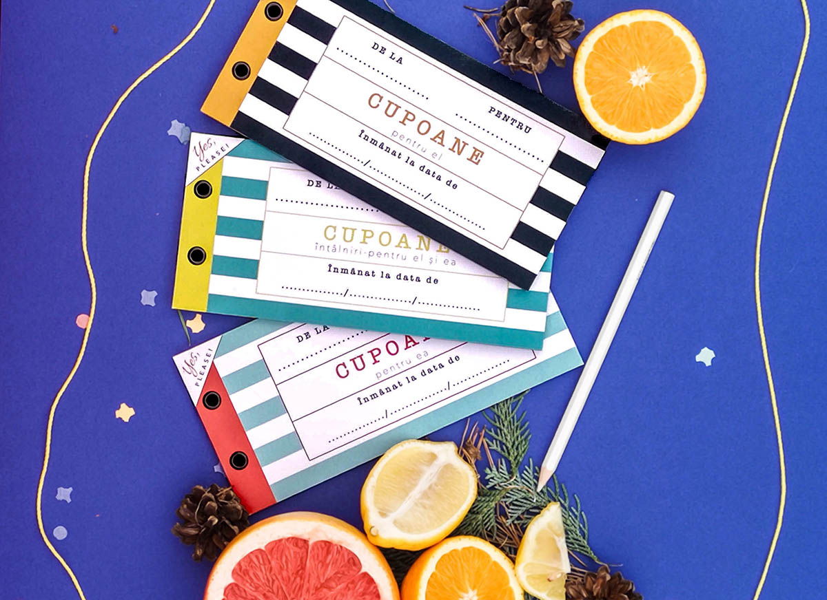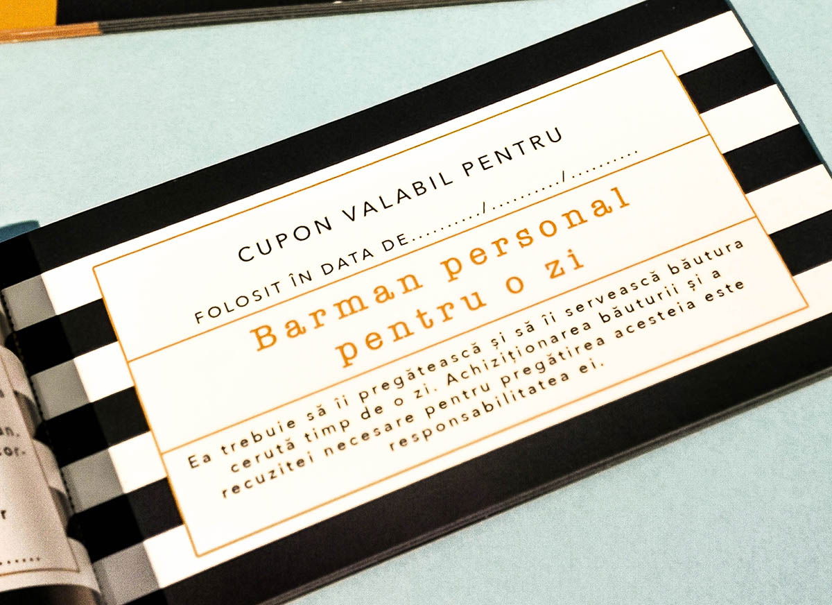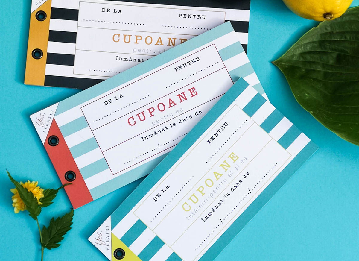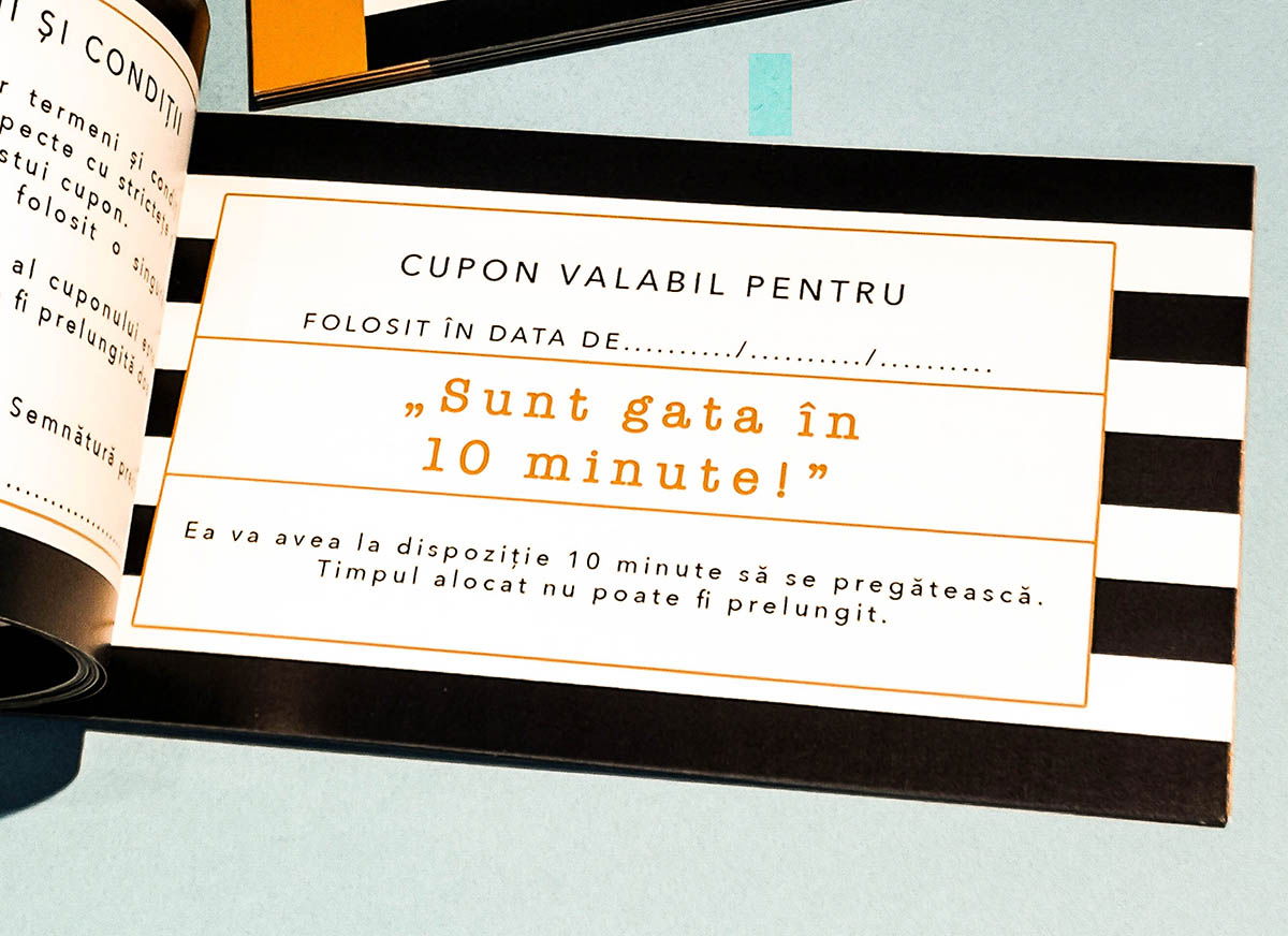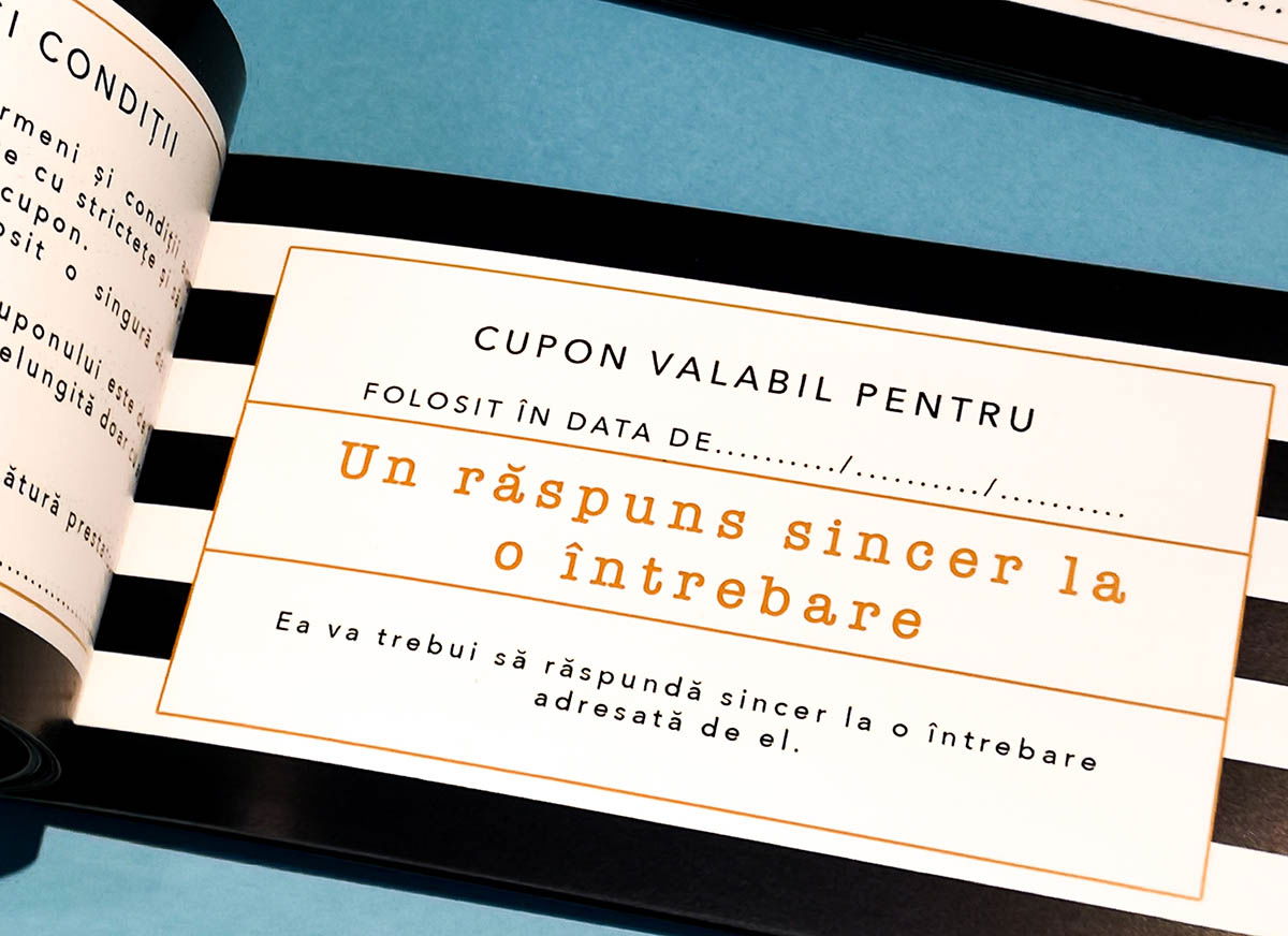 Utilizare: Cupoane personalizate pentru el au un design superb, dimensiuni compacte, hartie de calitate si sunt frumos structurate. Sunt 20 de cupoane cu dorinte si promisiuni, iar unul din ele este gol, pentru ca tu sa-l poti completa dupa pofta inimii (inimii sale, nu a ta). Regula e simpla: tu îi oferi iubitului tău cupoanele, iar el va alege cand sa le foloseasca. Pe fiecare cupon sunt vei gasi termenii si conditiile de utilizare. Have fun!