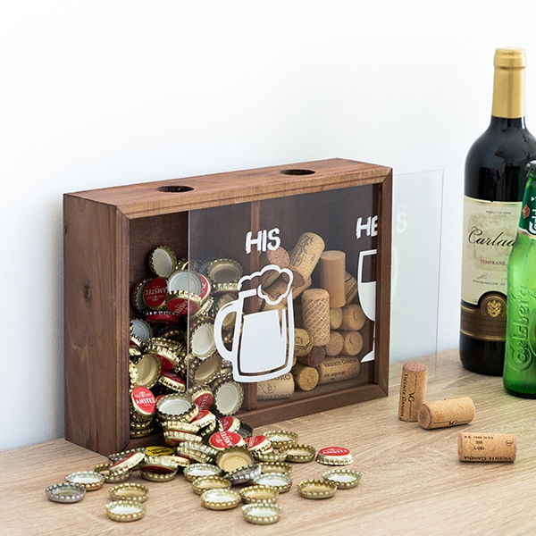 Cutie de colectie capace de bauturi El si Ea poate fi primul vostru obiect ornamental inedit de casa noua, atunci cand va mutati impreuna. Porniti la drum cu dreptul (inainte de a desface vreo sticla pentru a vana un dop de colectie) si afisati-va aceasta cutie neconventionala in living.
