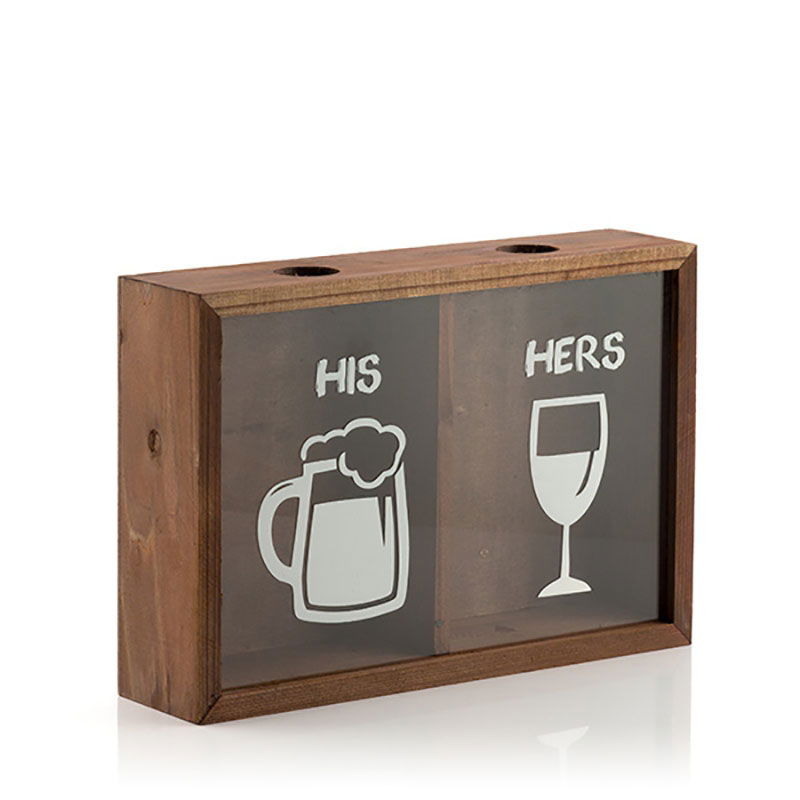 Alege-ti bautura preferata sau experimenteaza noi gusturi, delecteza-te, iar la final adauga dovada consumului in aceasta Cutie de colectie capace bauturi El si Ea. Cutia este prevazuta cu doua orificii in partea superioara si are geam transparent, ca sa puteti vizualiza dintr-o privire statusul de progres al colectiei voastre de cuplu. Gratie lemnului inchis la culoare, caseta este foarte eleganta. Asa ca, uite, poti spune ca in sfarsit ai gasit cel mai ingenios cadou pentru cupluri, pentru nasi, tineri indragostiti, cadou de nunta sau de casa noua. Yeeee, merita sa sarbatoresti lucrul asta!
