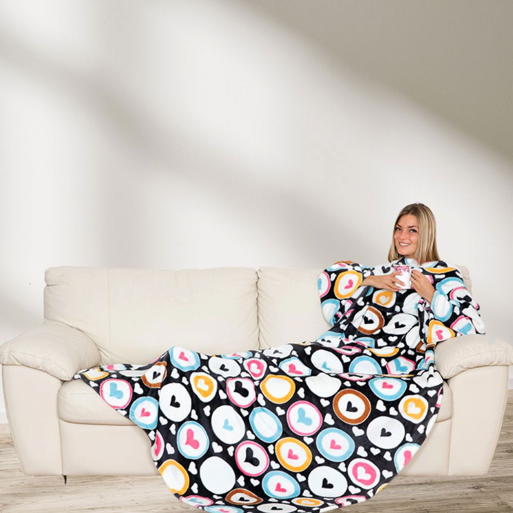Iti prezentam un produs fabulos, al carui rol este de a iti oferi clipe unice si extrem de confortabile. Fina la atingere, potrivita pentru orice imprejurare, fie ca este seara si vrei sa citesti, iarna si te simti infrigurat/a, vrei sa te simti confy sau iti savurezi cafeaua dimineata pe terasa, patura cu maneci este ideala pentru oricare dintre aceste momente.