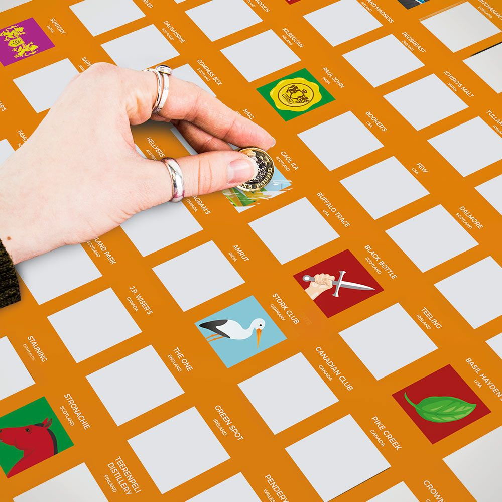 Cat dureaza intreaga calatorie (de la 1 la 100) depinde doar de tine. Vaneaza bautura, delecteaza-te cu ea si apoi razuieste fericit patratelul aferent de pe poster. O sa poti dezvalui de fiecare data cate o pictograma legata de tipul respectiv de whisky. Bucura-te dupa fiecare succes si ... porneste mai departe in calatorie.
