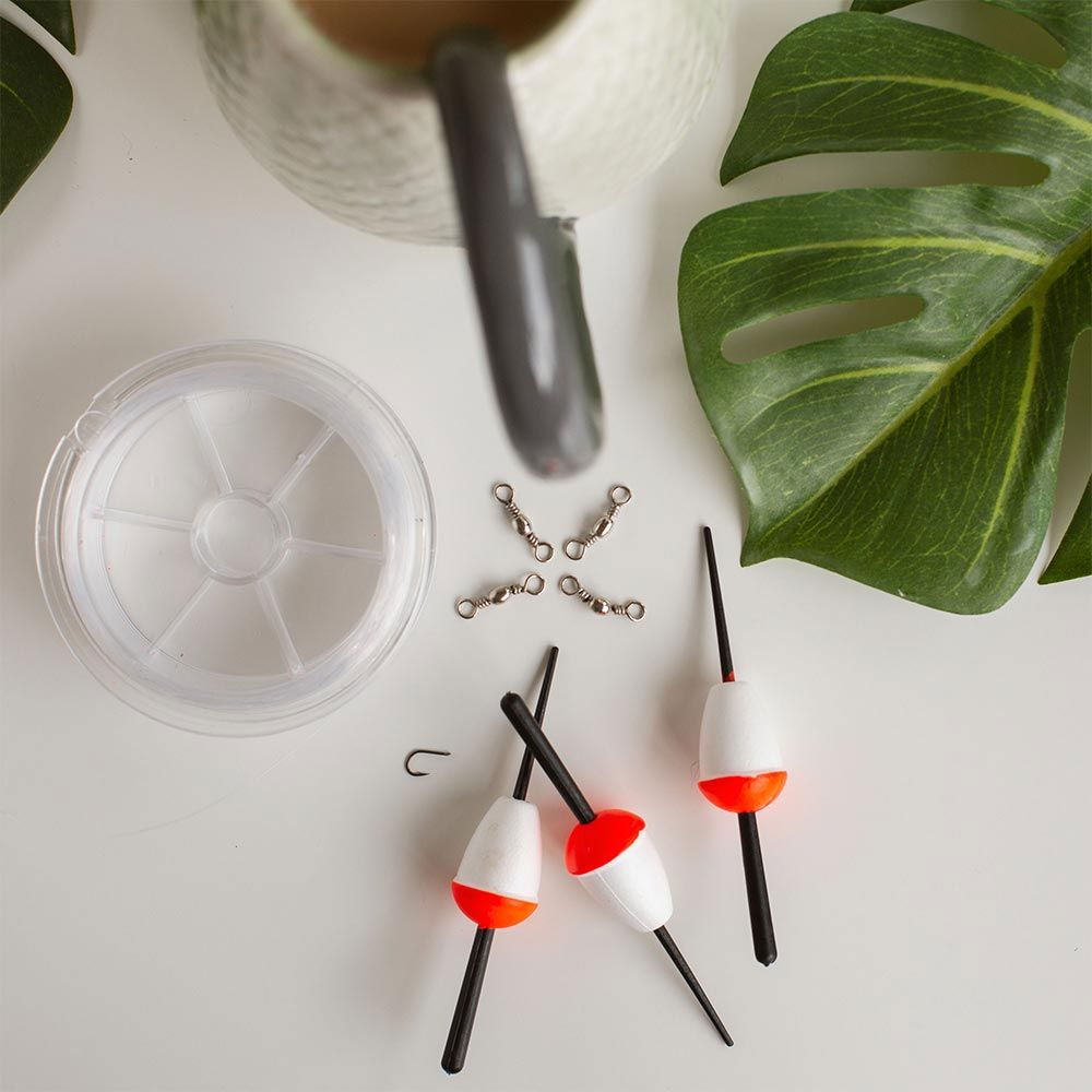 Pentru pasionatii adevarati am adaugat la pachet si cateva dintre ustensilele magice cu care vei da lovitura - o mulineta cu fir transparent ca sa-l iei prin surprindere, un carlig in miniatura, numai bun de prins in buza pestisorului auriu pentru clipa cand il vei lua la intrebari, 3 plute cu sistem reflectorizant ca sa fii la curent cu toate jocurile din balta, dar si 4 pivoti pentru pescuit profesional si fire cat mai larg intinse.