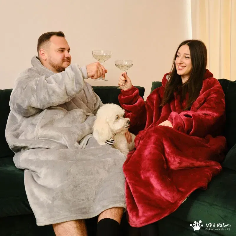 Mentineti pasiunea vie in relatia voastra si invaluiti-va in iubire si caldura cu Setul Cuplu 2 Paturi cu Maneci "We're Hot Together".
