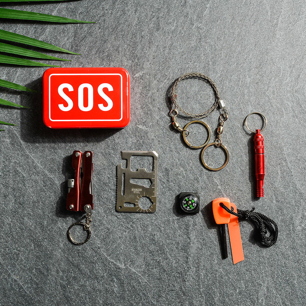 Utilizare: Urgente in camping? Fii un barbat adevarat si foloseste corespunzator SOS Kit supravietuire multifunctional, 6 unelte - busola pentru a te aventura prin locuri noi fara a te pierde la departare de casa, cartela multifunctionala pentru a face nod in papura, fluier pentru a orbi ursul, cheie de rezerva pentru clipele cand iti pierzi capul prin masina, un mini lant pentru torturi sclipitoare si un tool multifunctional cu 5 unelte pentru luptele cu conservele de mâncare si nu numai.