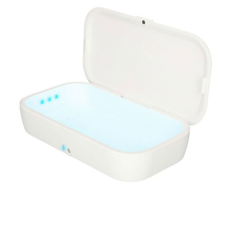 Asta inseamna ca te vei putea bucura de beneficiile acestuia o perioada indelungata de timp, far sa tragi la kilogram. Dimensiunile reduse il transforma in alegerea compacta si fiabila pentru orice poseta, chiar si pentru gentile alea minuscule in care n-ai loc nici macar sa-ti mai arunci ochii la pachet. Acest Sterilizator UV caseta alba cu incarcator wireless absoarbe fiinta si energiile tuturor bacteriilor, fiind cutiuta ideala pentru chei, telefon si zeci de alte accesorii minuscule care nu-ti vor mai pune sanatatea sub semnul intrebarii. Cu el vei fi mai sigur si mai plin de tine ca niciodata.