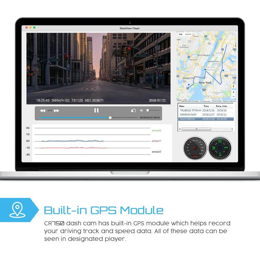 Senzor G: Camera auto dispune de un senzor G ce are un rol foarte important in cazul unui accident. In momentul in care senzorii camerei detecteaza impactul cu un alt obiect, inregistrarea este blocata si nu va fi suprascrisa, in timpul inregistrarii in bucla.