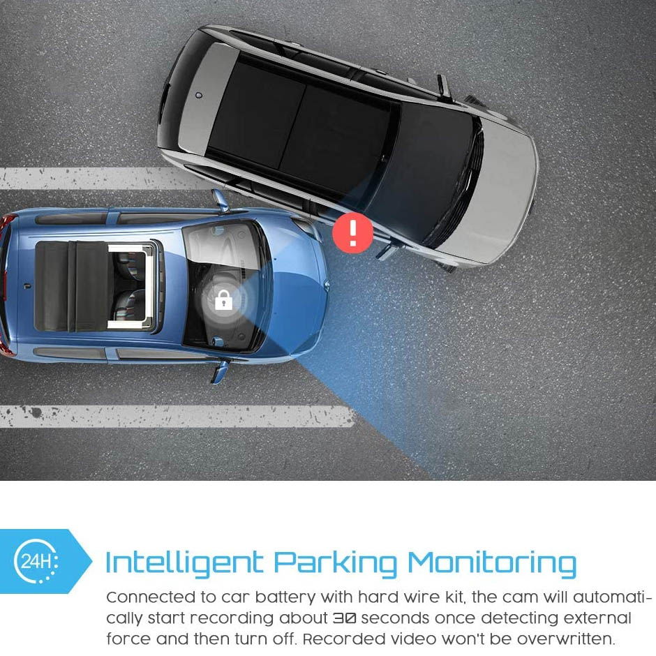 Utilizare: Camera de bord este cel mai eficient martor chiar si atunci cand masina nu se afla in miscare. Modulul pentru monitorizarea parcarii ofera protectie completa masinii. Ca si mod de functionare, camera va porni in momentul in care detecteaza o forta externa asupra masinii si va inregistra timp de aproximativ 30 de secunde. Dupa aceea se va opri pentru a nu consuma rapid toata bateria. Videoclipul care include si sunet nu va fi suprascris si poate reprezenta o dovada cheie la politie sau la firmele de asigurare.