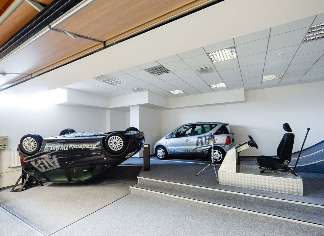 În cadrul experienței, cursantul trece și prin simulatoarele de rasturnare și impact frontal, care fac parte din cursul de conducere defensivă. (Defensive Drive)