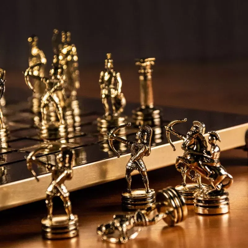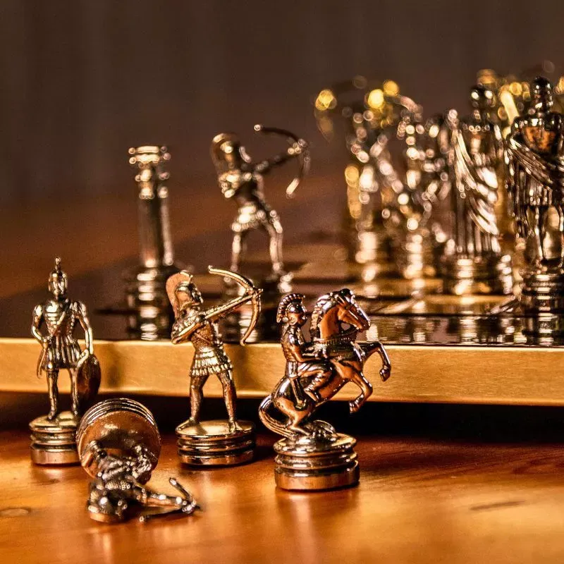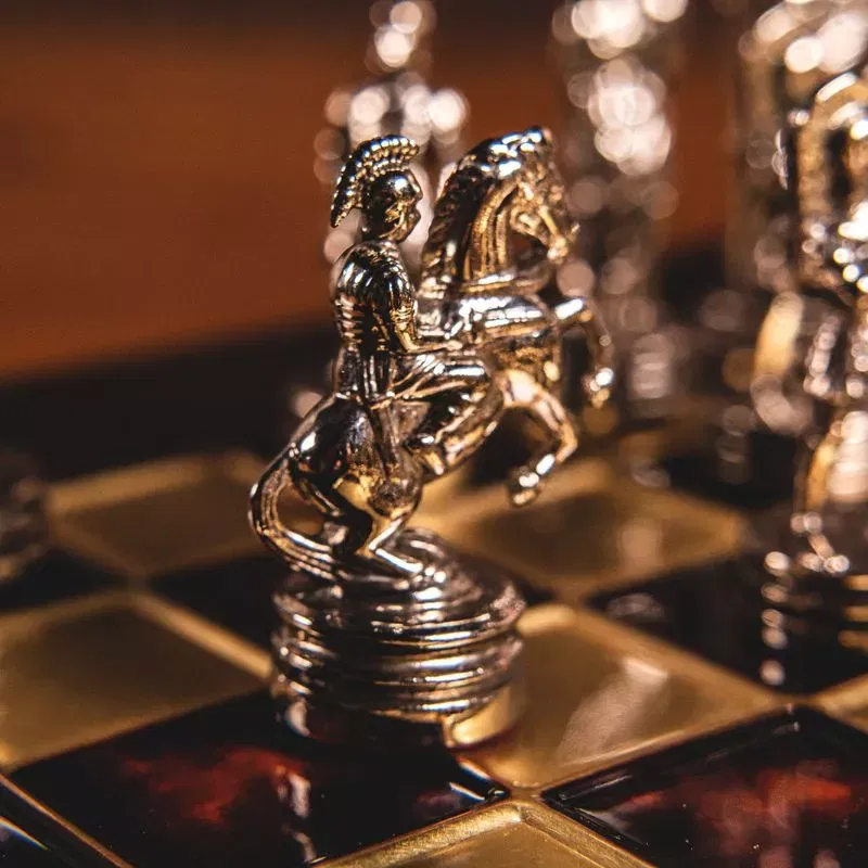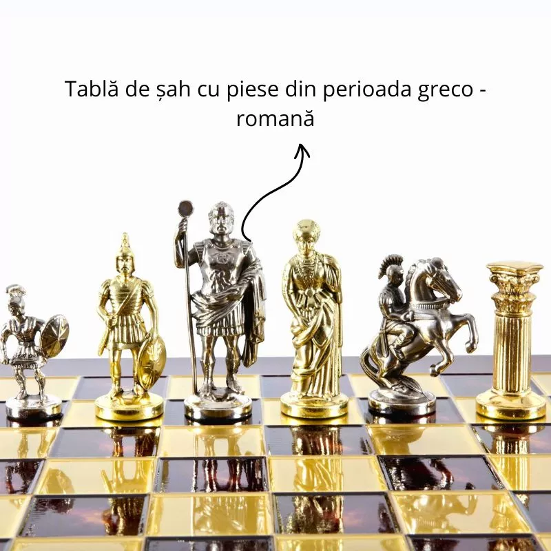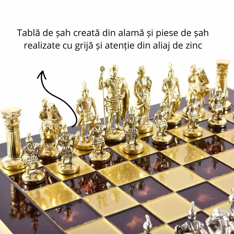 Designul atractiv: Jocul Sah Razboaie Romane este conceput cu un design impresionant. Caseta de 44 x 44 cm este de dimensiuni generoase, oferind o experienta vizuala placuta si un aspect impunator. Piesele gold & silver sunt realizate cu mare atentie la detalii, iar tabla de sah Bronze Red adauga un element elegant si sofisticat.