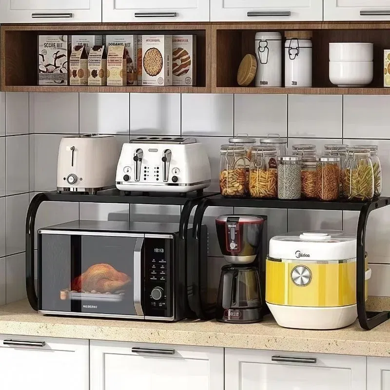 Se monteaza rapid si se pozitioneaza direct peste cuptorul cu microunde. Raftul superior devine un spatiu perfect pentru condimente, ustensile sau recipiente uzuale, pastrand blatul liber si organizat.
