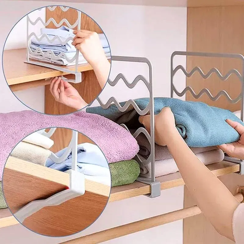 Utilizare: Separatorul pentru Rafturi este extrem de usor de utilizat. Pur si simplu gliseaza despartitorul pe raftul dorit, fara a necesita unelte sau hardware suplimentar. Flexibilitatea sa permite ajustarea rapida si usoara, asigurand o fixare stabila si sigura. Poate fi folosit in dulapuri pentru haine, rafturi de bucatarie, birouri si multe altele. Cand este necesara reorganizarea, separatorul poate fi mutat sau indepartat cu usurinta.