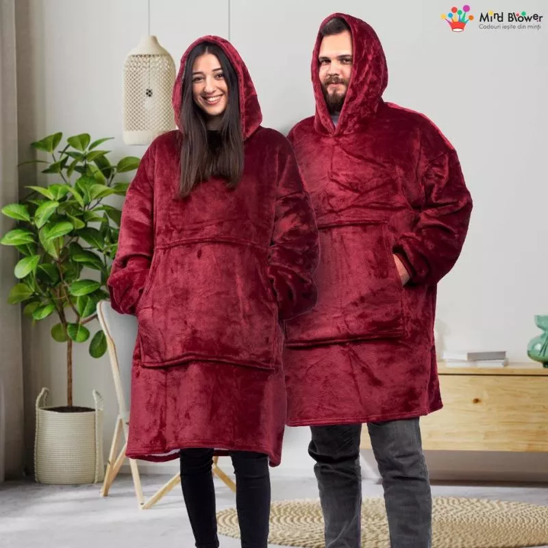 Acest hanorac patura cu maneci aduce pasiune si caldura in relatia voastra. Experimentati confortul polarului de 480g/mp, impartasind momente speciale in fiecare clipa.
