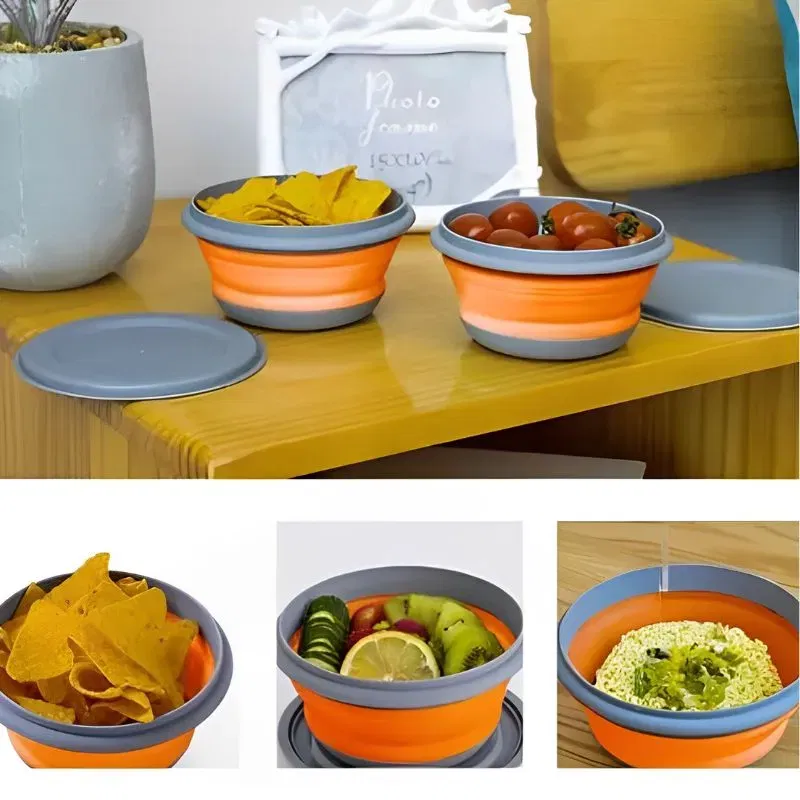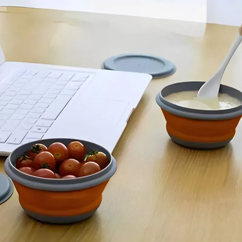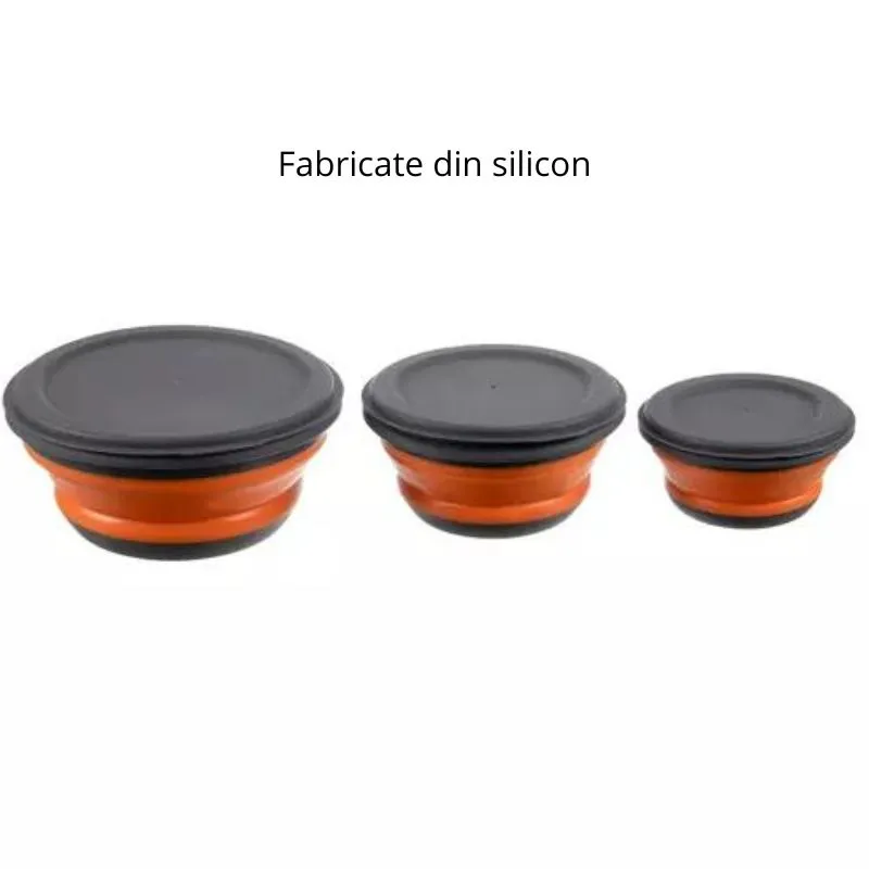 Setul de boluri pliabile din silicon este extrem de versatil si usor de utilizat. Desfa bolurile pentru a depozita alimente proaspete sau gatite si foloseste capacele pentru a le pastra in siguranta. Cand nu le folosesti, pliaza-le si economiseste spatiu in dulapul tau. Sunt ideale pentru utilizarea in frigider, congelator sau chiar pentru transportul mancarii in excursii.