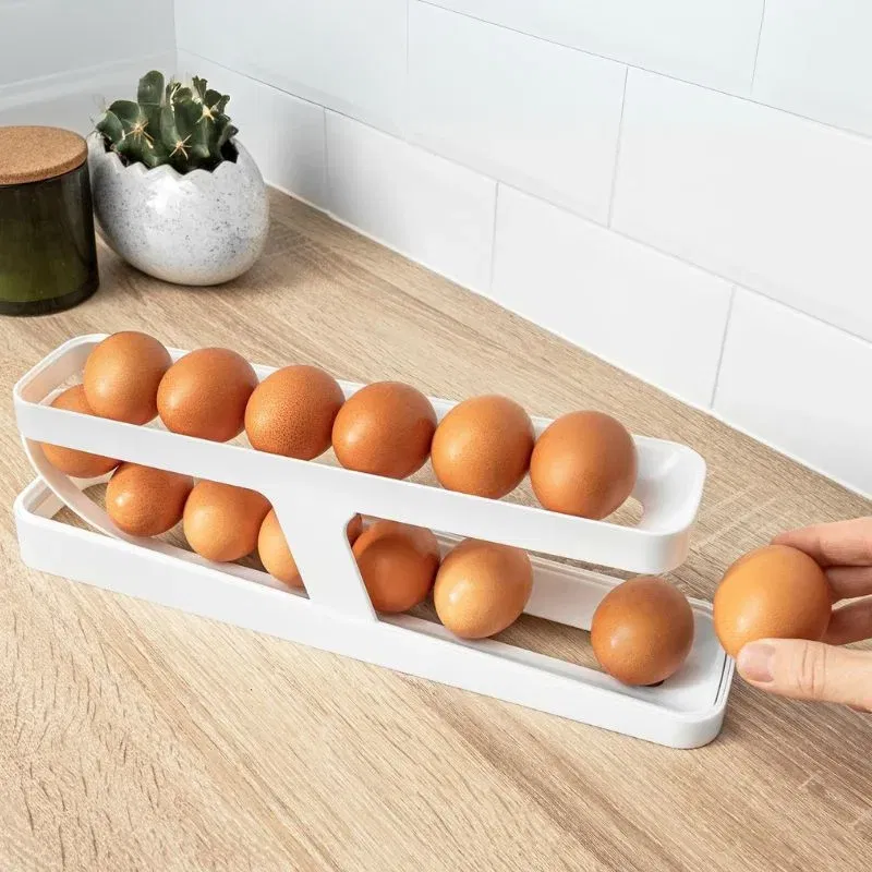 Economiseste spatiu si organizeaza eficient ouale in frigider cu acest dispenser automat pe doua nivele.