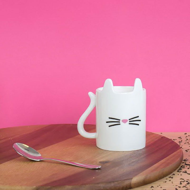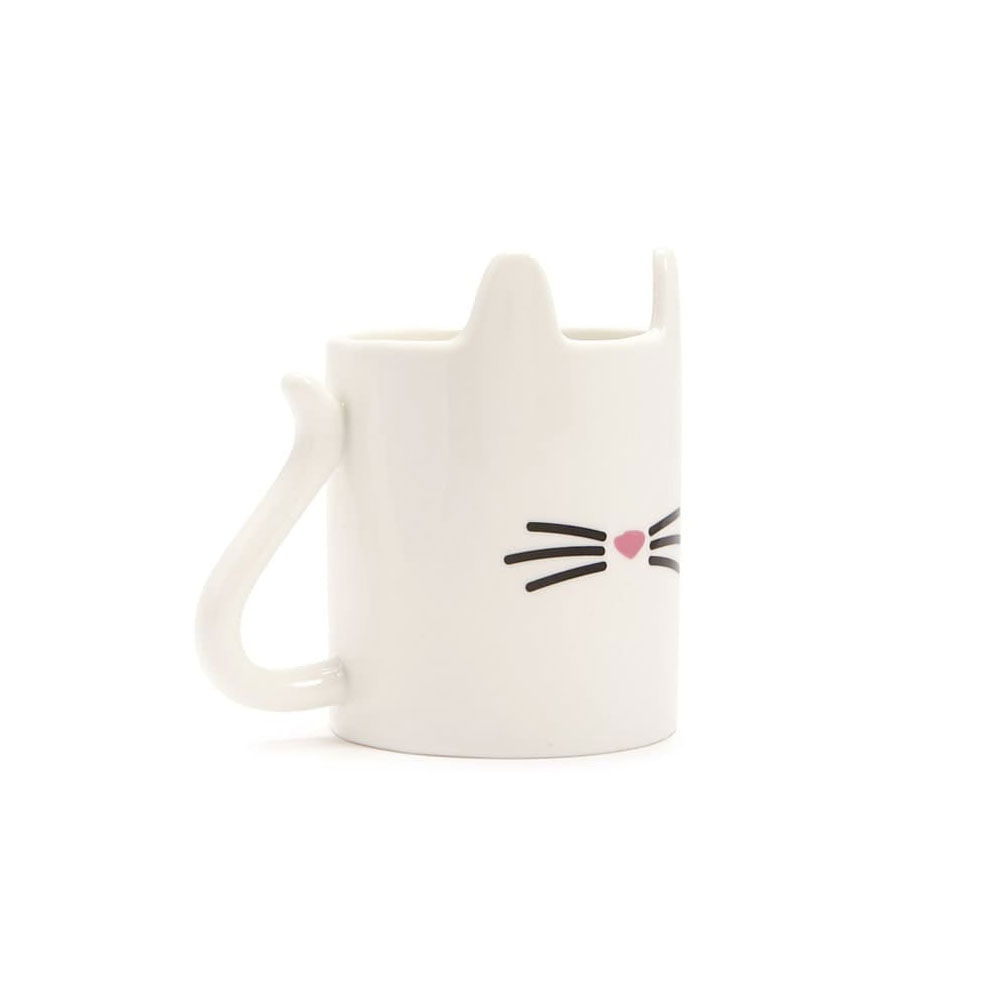 Cu mustatile sale fine si coada selecta, Cana haioasa in forma de pisica Purrfect este realizata din ceramica alba-ca-zapada ce se va acomoda perfect pe biroul de lucru sau printre rafturile de bucatarie. Nu are nevoie de o mentenata speciala, ci doar de un dus regulat, dupa fiecare utilizare, manual sau prin puterea magica a unei masini de spalat vase.
