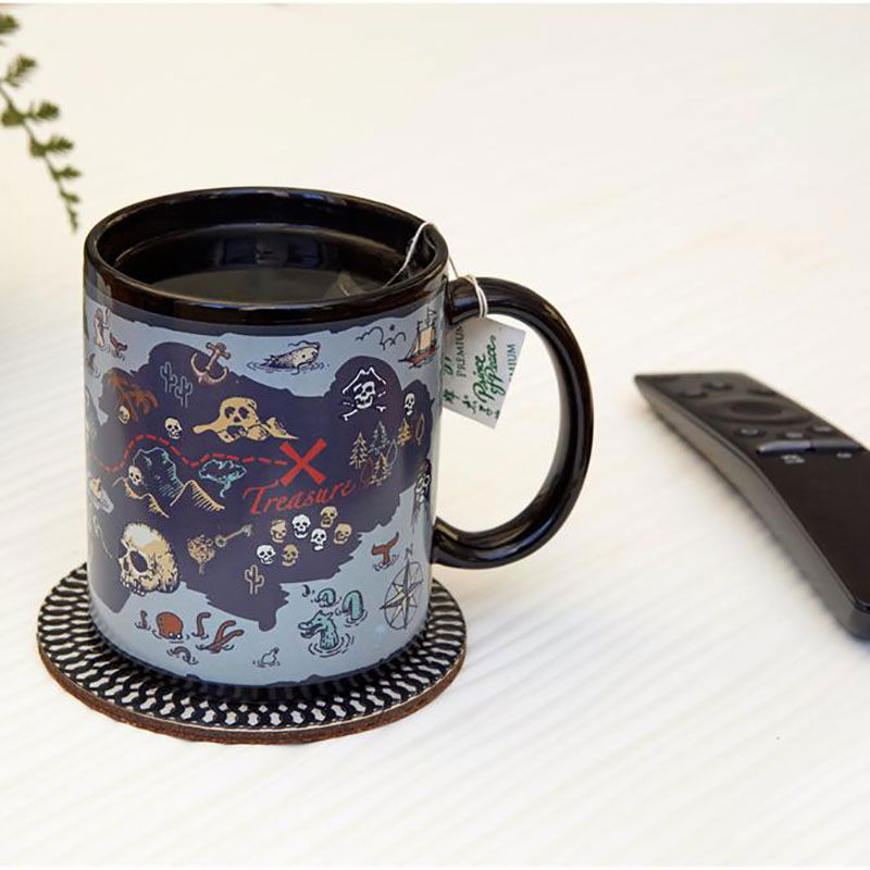 Cana termosensibila este o frantura de magie super amuzanta si originala. Stai linistit, nu trebuie sa pleci cu noaptea-n cap sa vanezi in somn comoara piratilor si cai verzi pe pereti. E suficient sa torni o bautura fierbinte in aceasta cana si harta comorii va fi imediat deslusita pe peretii sai exteriori. Functioneaza cu orice bautura, cu conditia sa fie fierbinte - incearca ceai, cafea, ciocolata calda, cappuccino, lapte, lapte cu cacao. Ofera cadou Cana termosensibila Comoara piratilor si fa-i diminetile mai frumoase.