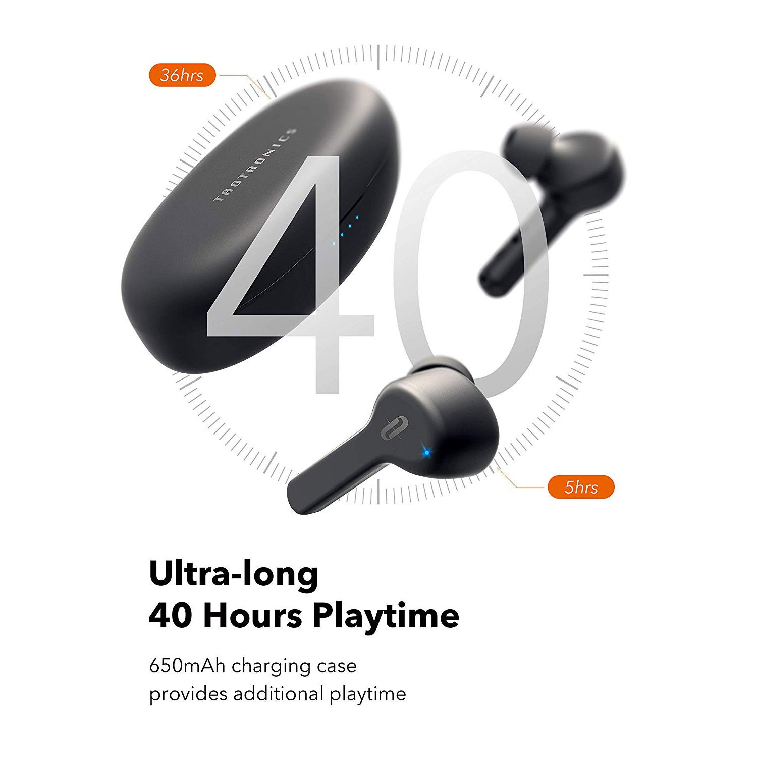 Timp de redare a sunetului de pana la 40 de ore: Sunt unul din cele mai bune casti audio fara fir din industrie, datorita autonomiei crescute de pana la 40 de ore. Capacitatea bateriei carcasei de incarcare este de 650mAh, iar timpul de incarcare maxima este de aproximativ 2.5 ore.