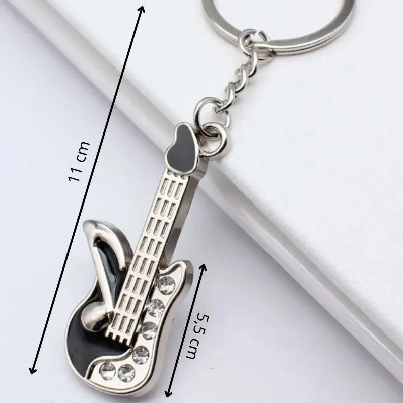 Realizat din aliaj metalic de calitate, cu finisaj argintiu si negru lucios, brelocul reproduce fidel forma unei chitare electrice. Se ataseaza usor la chei, rucsac, geanta de sala sau chiar la tocul chitarei, adaugand un strop de personalitate si vibe muzical oricarui obiect.