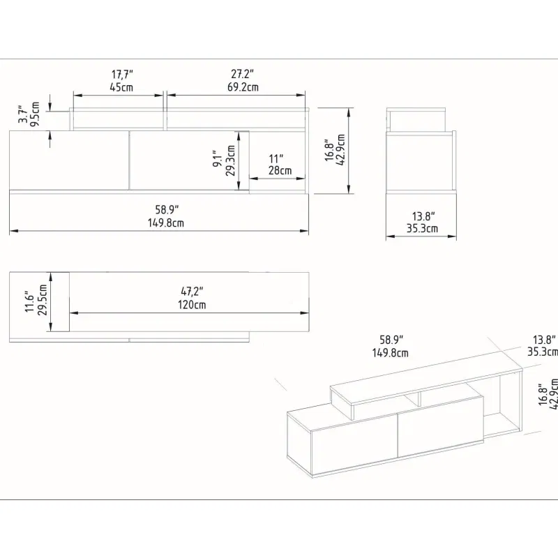 Dimensiunile de 150 cm latime si 42 cm inaltime o fac ideala pentru televizoare de diferite dimensiuni. Montarea pe perete economiseste spatiu si ofera un aspect aerisit si elegant incaperii. O piesa de mobilier moderna si practica, perfecta pentru un living bine si stilat.
