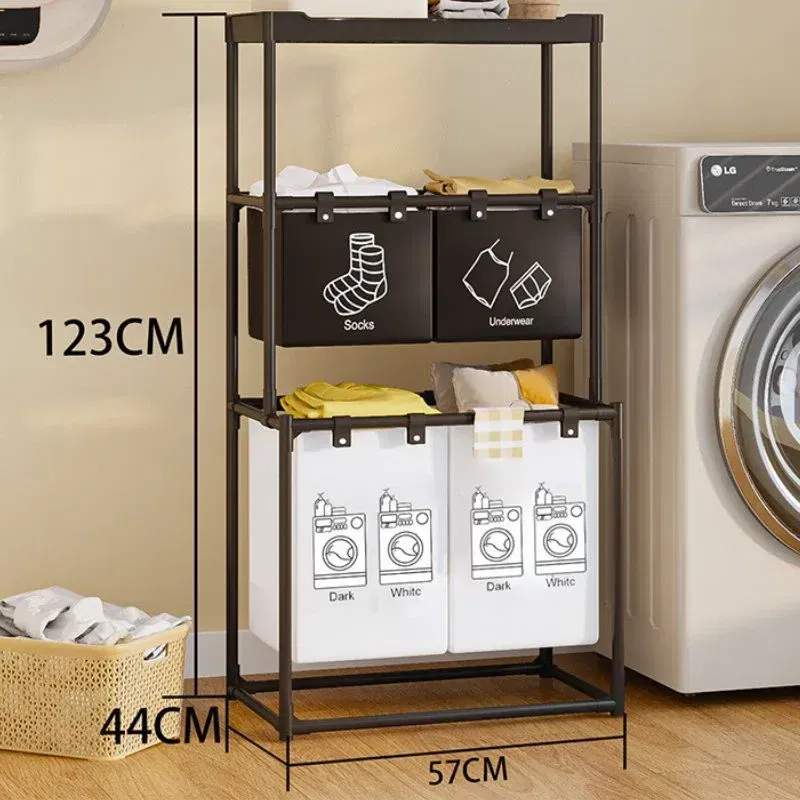 Se monteaza simplu si devine rapid centrul de comanda pentru rufele tale. Compartimentele textile te ajuta sa sortezi hainele din start, iar raftul de sus iti tine la indemana tot ce folosesti la fiecare spalare.