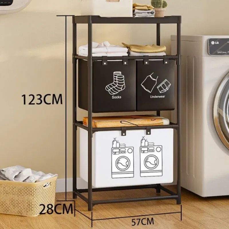 Cosul de rufe compartimentat cu etajera de depozitare este combinatia perfecta intre functionalitate si economie de spatiu. Cu un design vertical si inteligent, acest produs imbina doua nevoi esentiale: sortarea rufelor si depozitarea detergentilor, balsamurilor sau accesoriilor de spalare, intr-un singur loc.