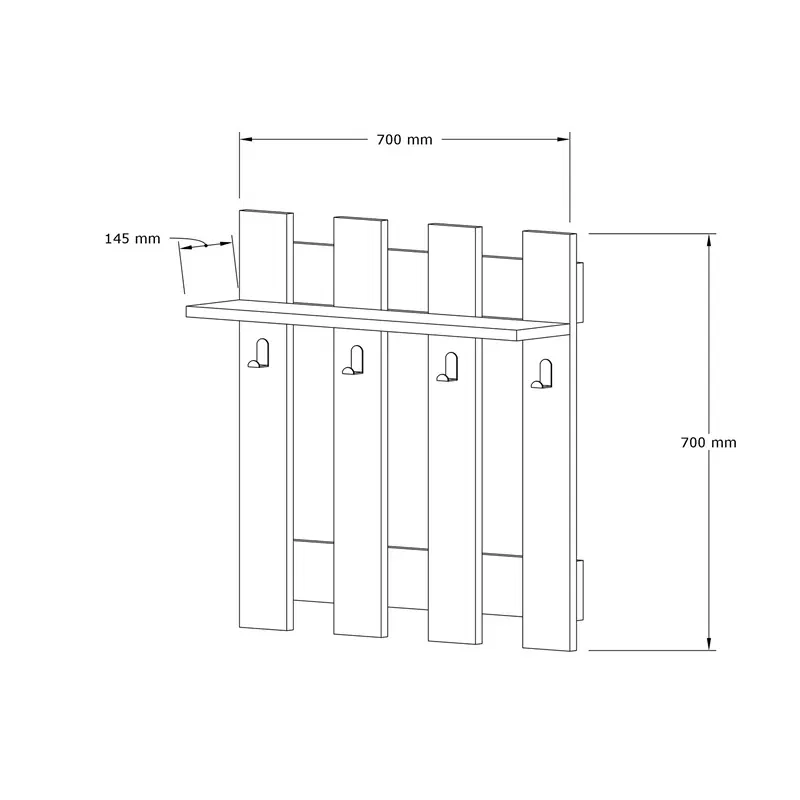Dispune de un raft superior pentru depozitarea cutiilor sau accesoriilor si mai multe carlige pentru haine, genti sau prosoape. Poate fi montat pe perete pentru a economisi spatiu si a pastra un decor ordonat.