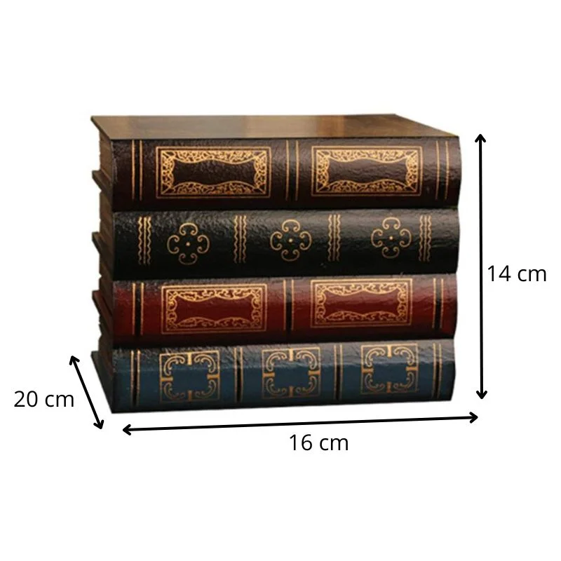 Dimensiunile aproximative de 20 cm inaltime, 14 cm latime si 16 cm lungime o fac usor de integrat pe rafturi, biblioteci sau birouri. Poate fi asezata alaturi de carti reale, devenind aproape imposibil de diferentiat la prima vedere. Este solutia ideala pentru depozitare discreta si decor in acelasi timp.